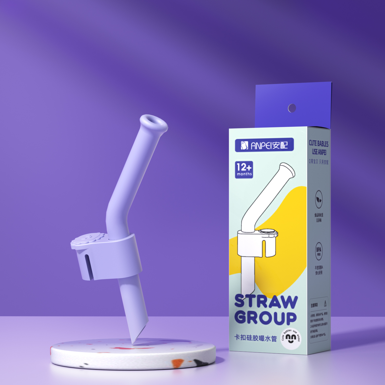 安配卡扣硅胶嘬水管 暮山紫