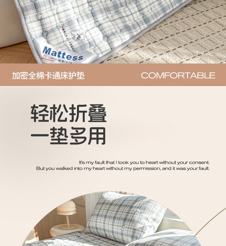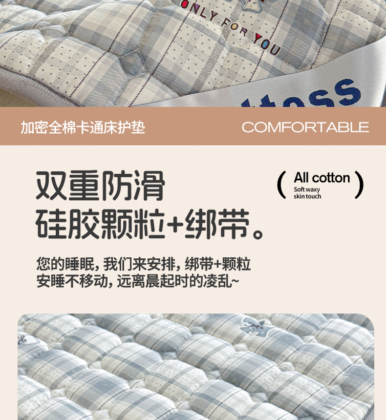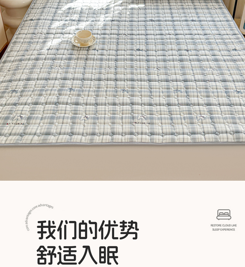 【初夏焕新】自然醒13070全棉卡通防滑床褥床垫13372抗菌床护垫四季通用薄款床褥垫防滑褥子席梦思保护垫床铺垫LN