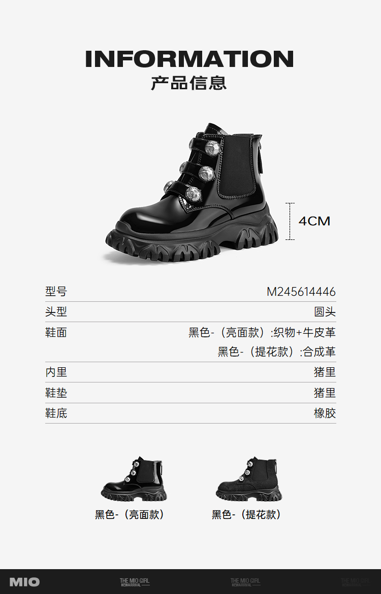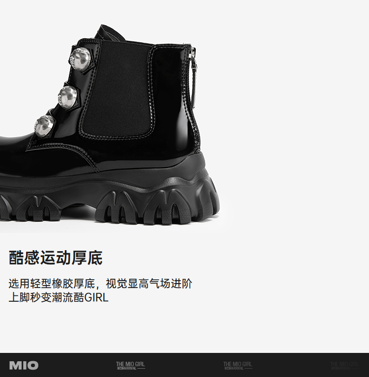 MIO米奥冬季时尚潮流马丁靴酷飒圆头显高短筒百搭女靴M245614446
