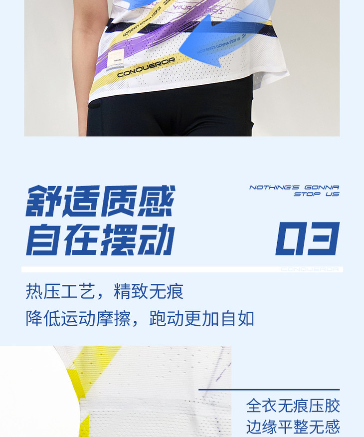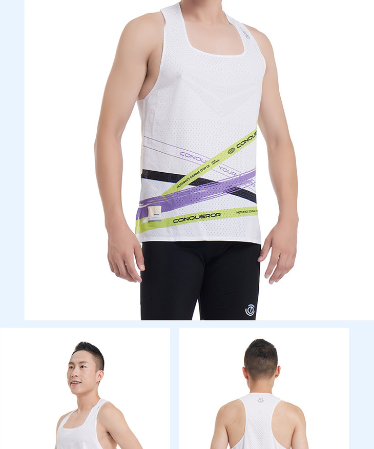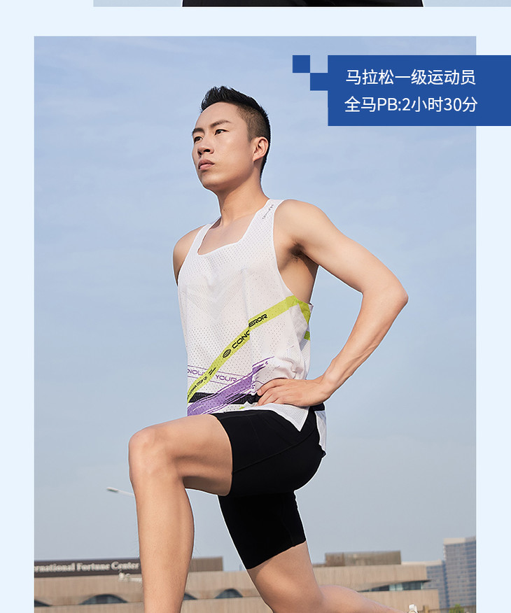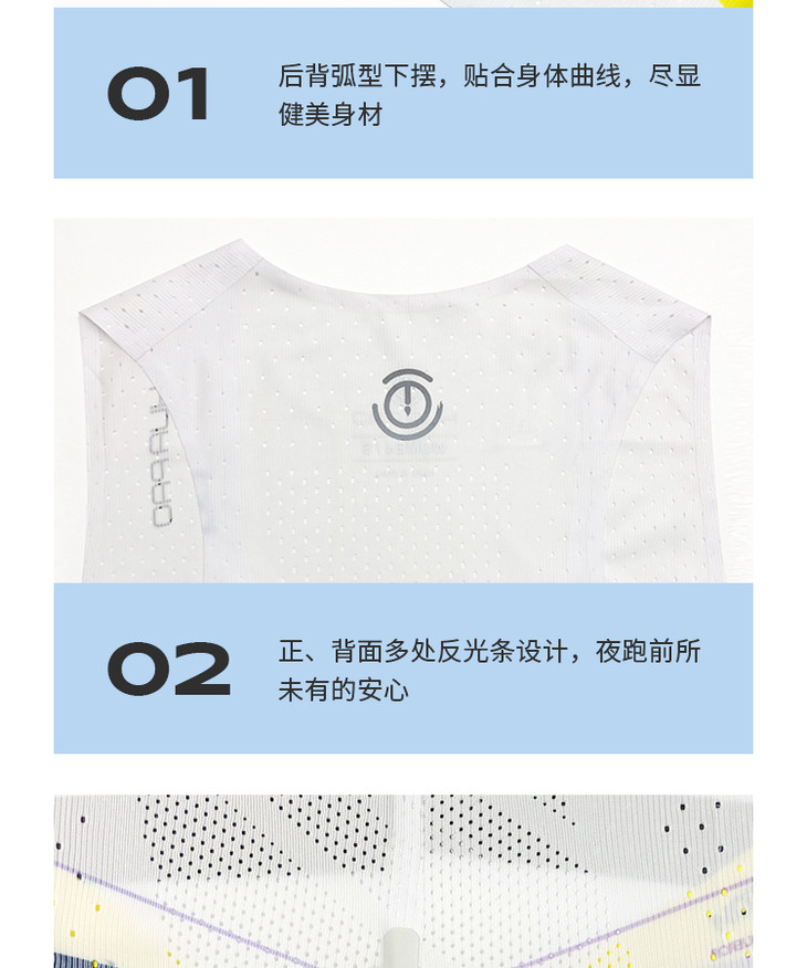 √ 超轻羽量,飞驰赛场!仅34克,比一个鸡蛋还轻;√ 运动速干面料,6000多个透气网孔,排汗更高效;√ 全无痕压胶工艺:0感贴合,降低运动摩擦;√ 两侧下摆开叉设计,减少束缚,自由舒展,跑动更自如;√ 前后反光标识设计,让夜跑前所未有的安心!