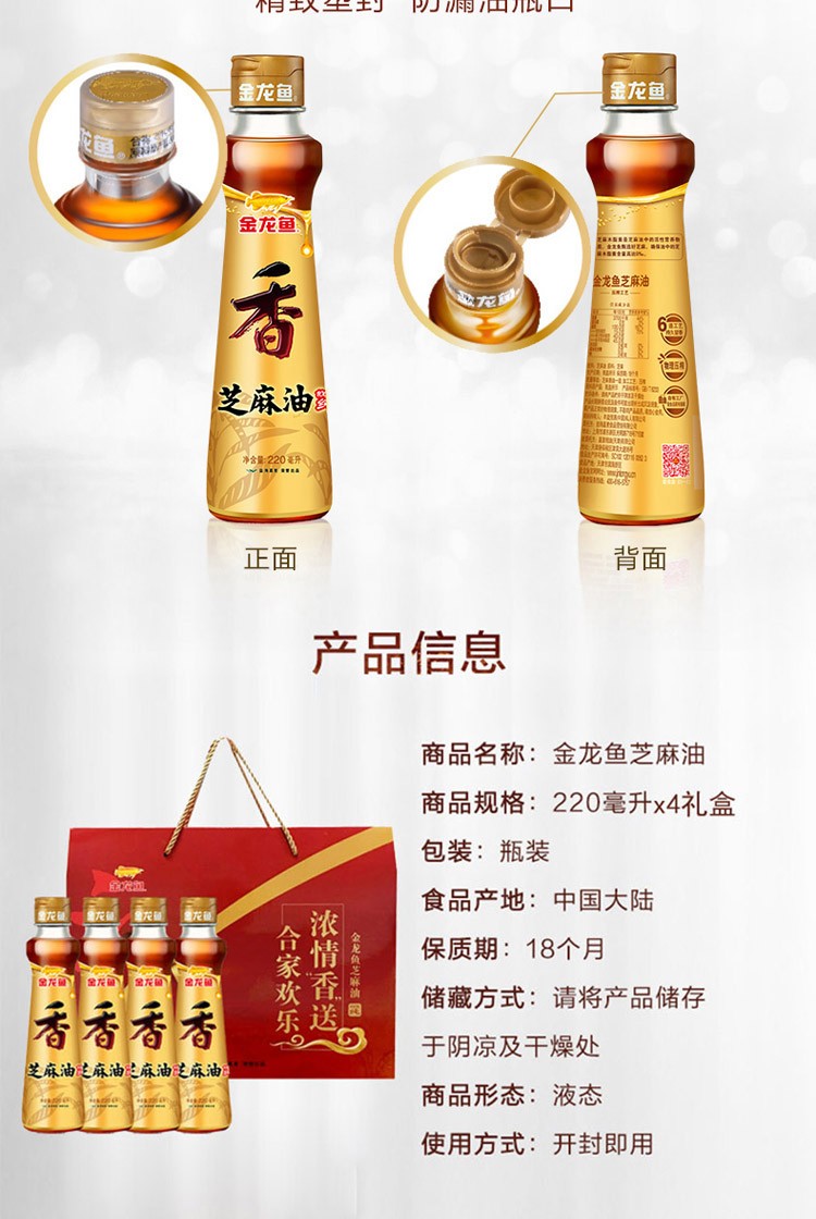 金龙鱼 芝麻油礼盒220ml*4