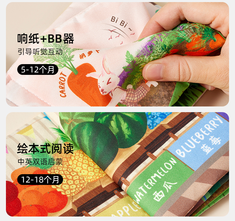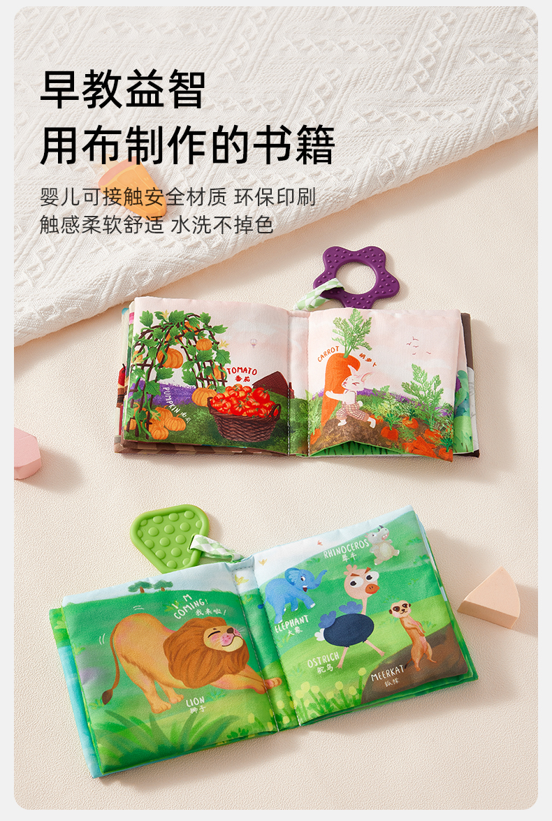 嫚熙布书婴幼儿手撕书宝宝早教益智启蒙撕撕书撕不烂可啃咬玩具书-H