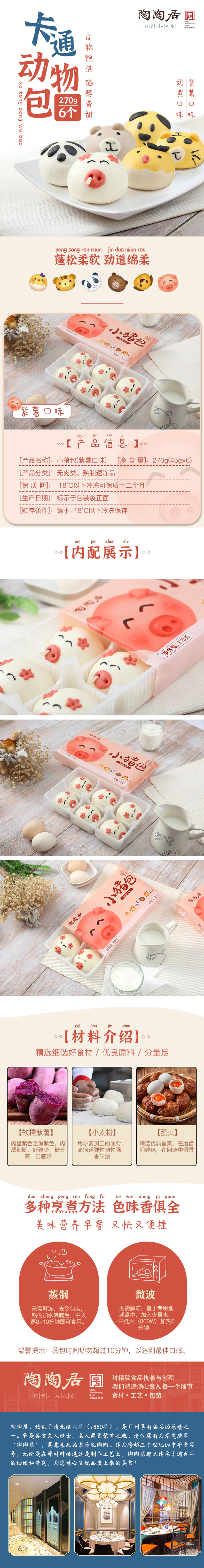 【顺丰冷链】广州陶陶居酒家速冻包子 可爱动物包*3包小猪小熊小胖小虎小鸡小狗包早餐方便速食港式粤式早茶点心
