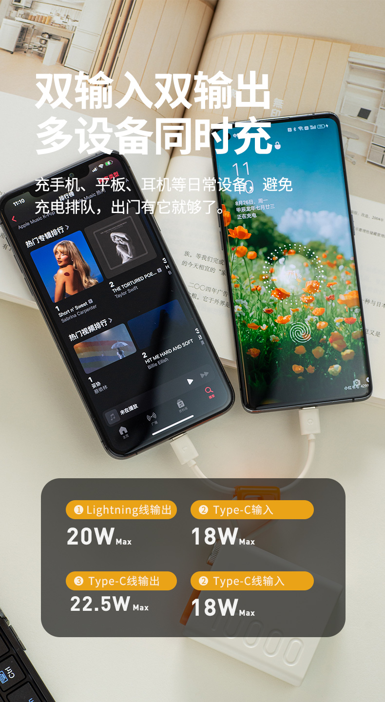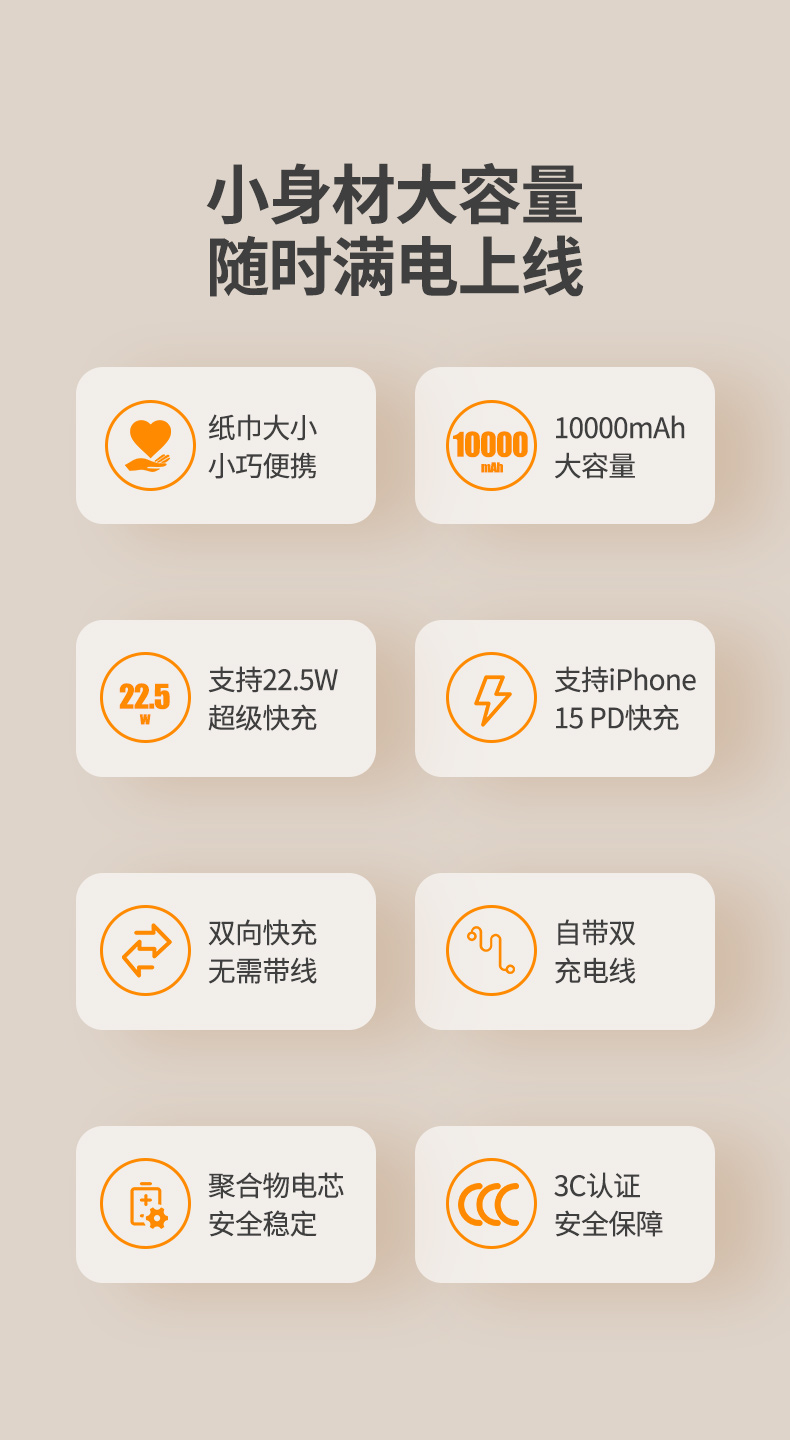掌心充电宝 幻响22.5w 快充充电宝10000毫安 迷你充电宝移动电源 适用于小米苹果双向快充