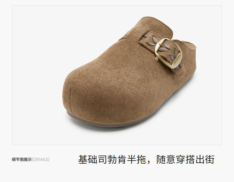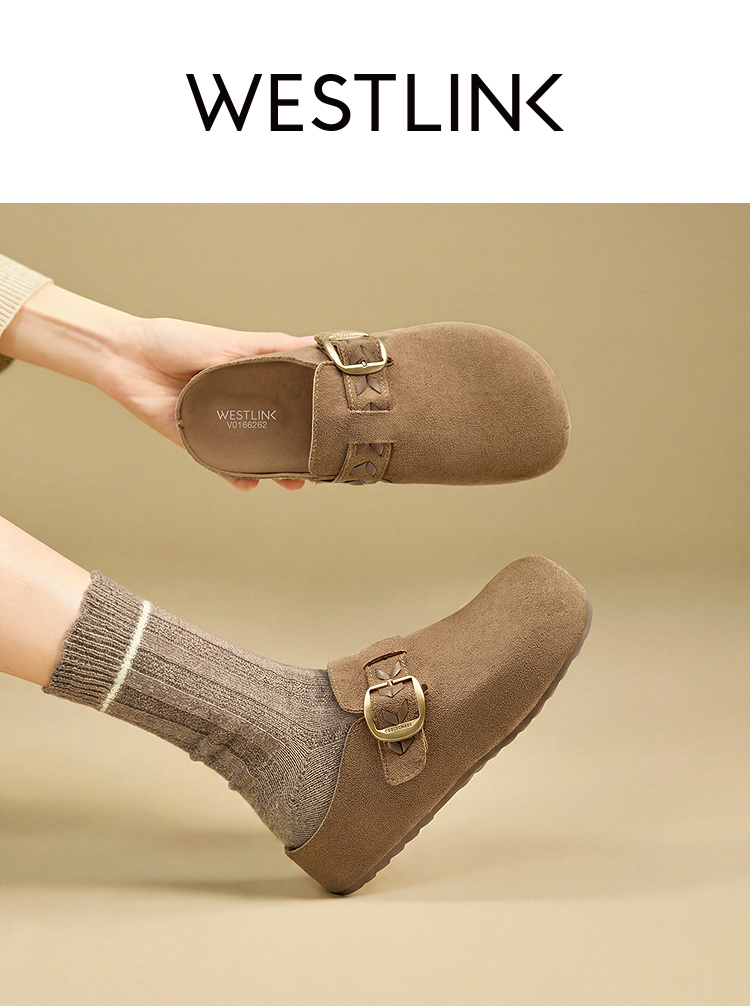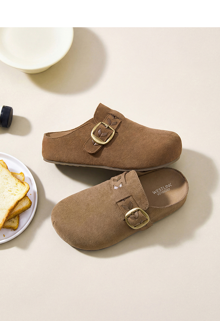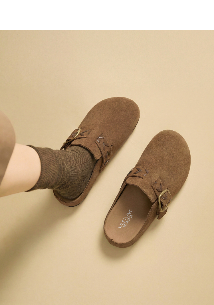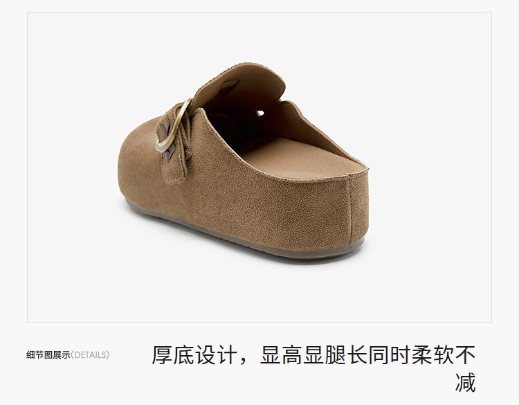 西遇复古厚底勃肯鞋半拖女2026春季新款包头拖鞋增高一脚蹬休闲鞋V0166262