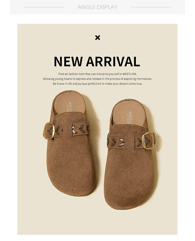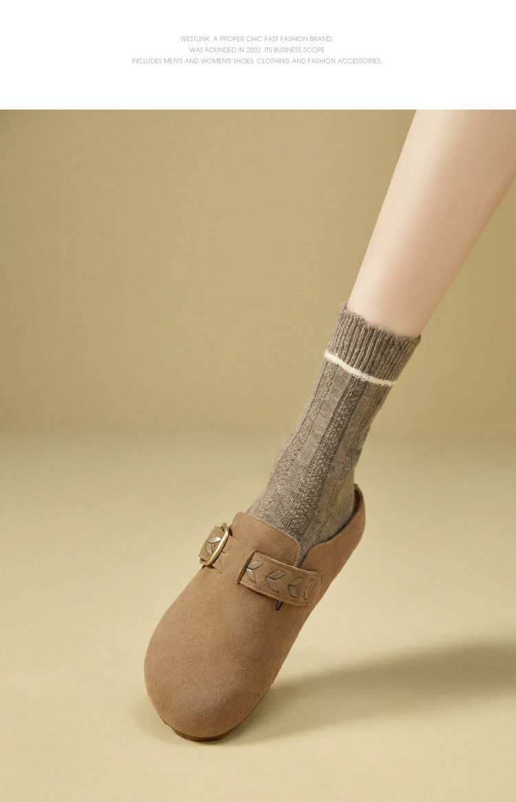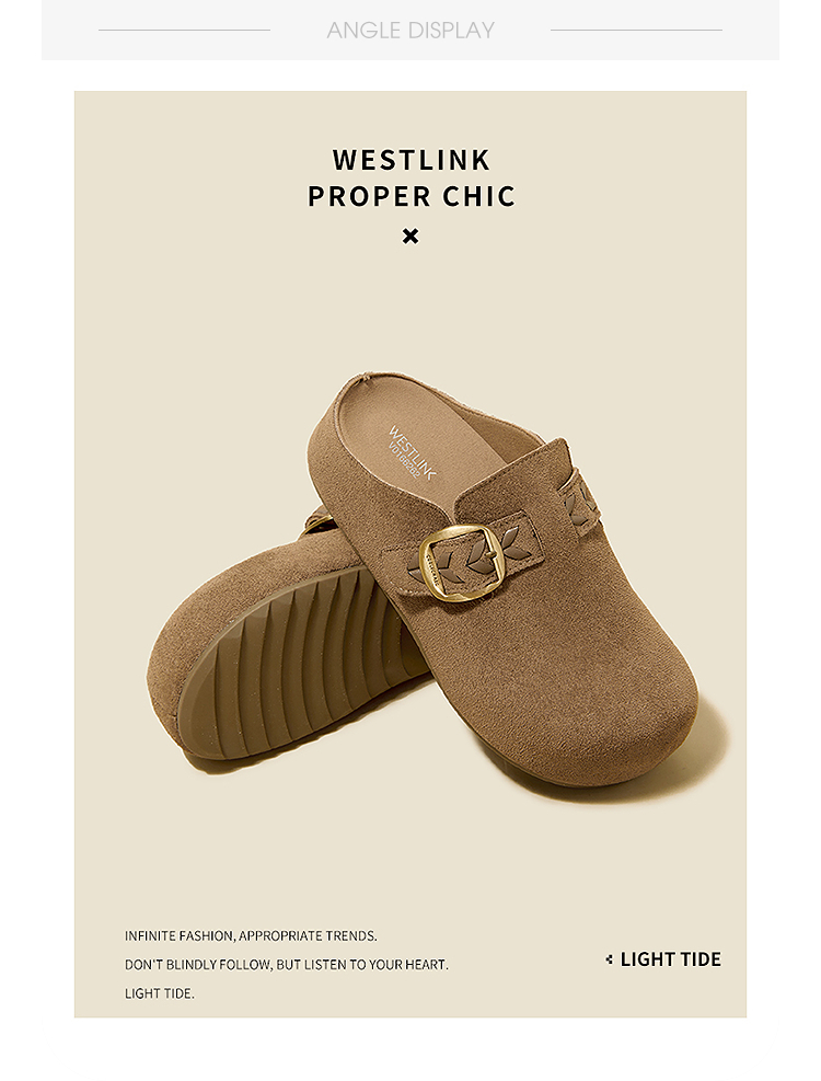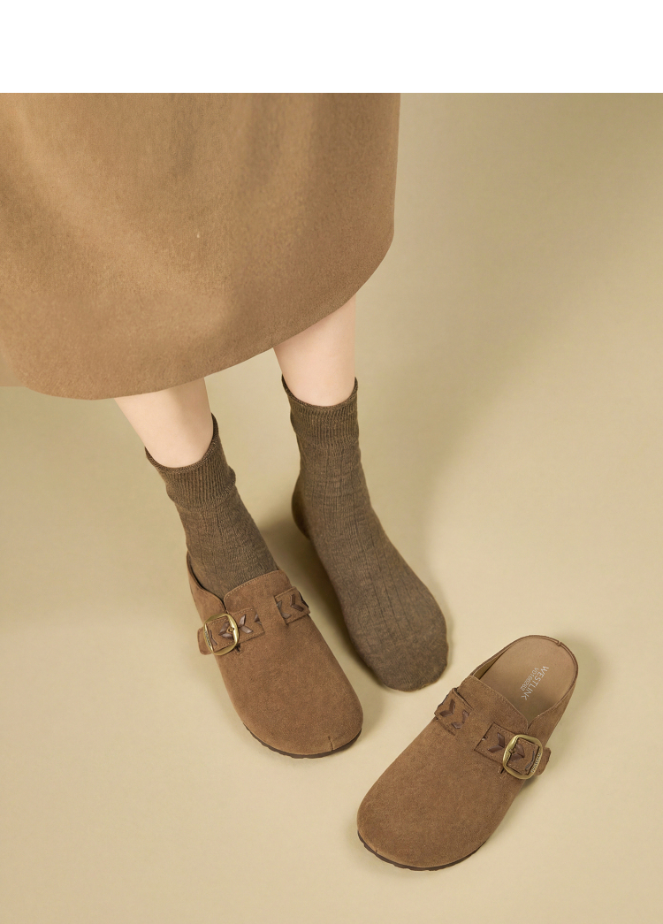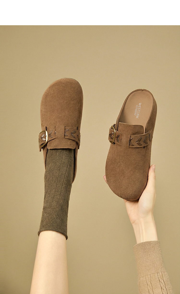 西遇复古厚底勃肯鞋半拖女2026春季新款包头拖鞋增高一脚蹬休闲鞋V0166262