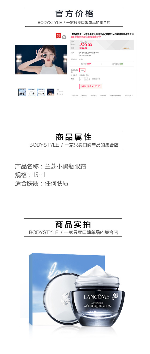 【12.17 大牌再降价】兰蔻小黑瓶眼霜15ML(盒子压皱)