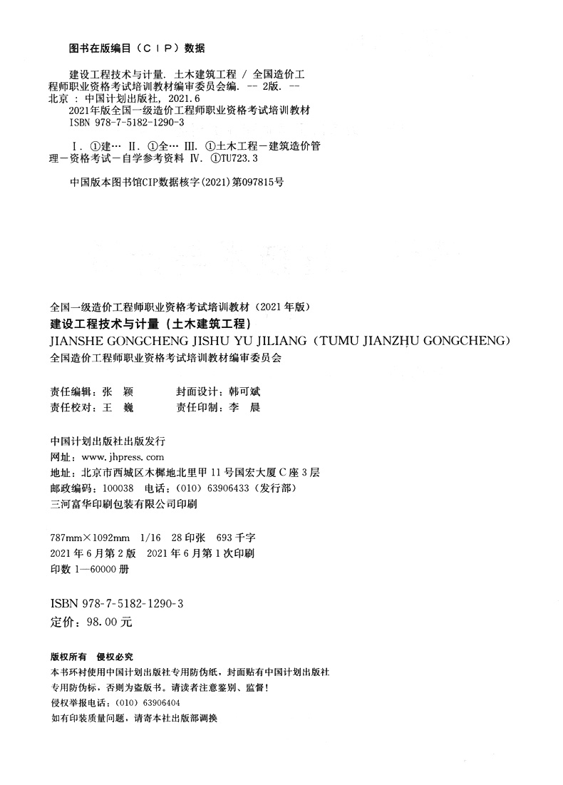 书名:2021一级造价师 教材 建设工程技术与计量(土木建筑工程)