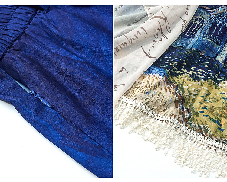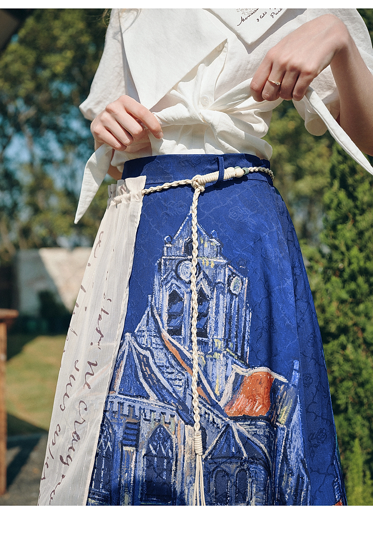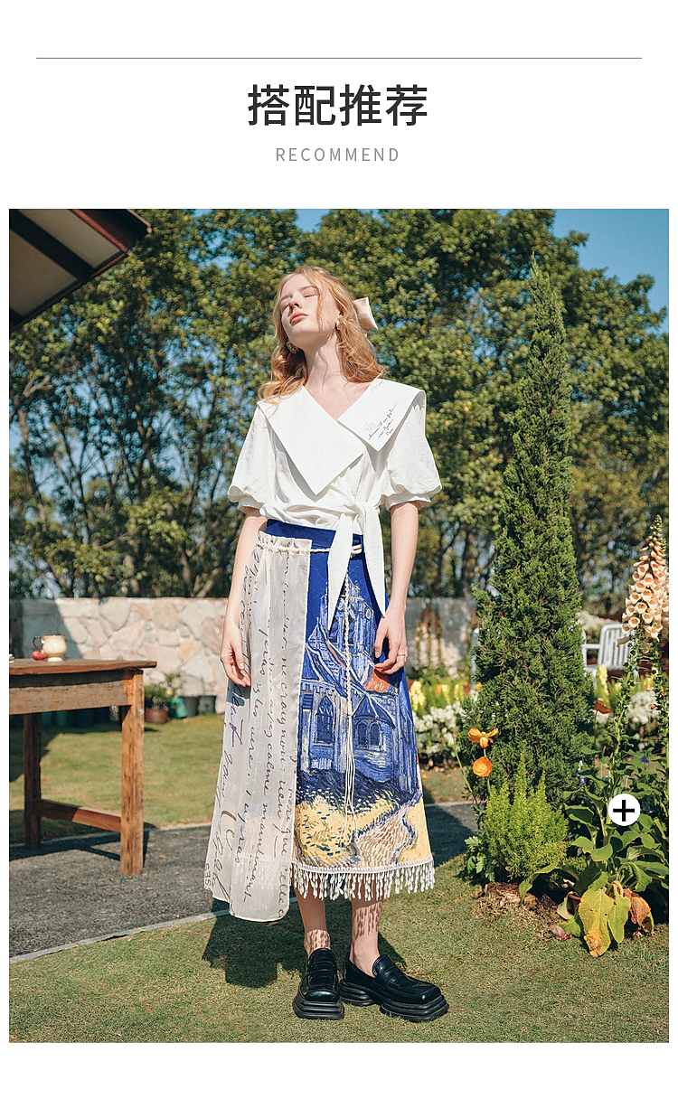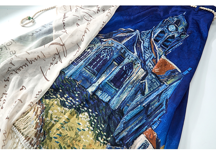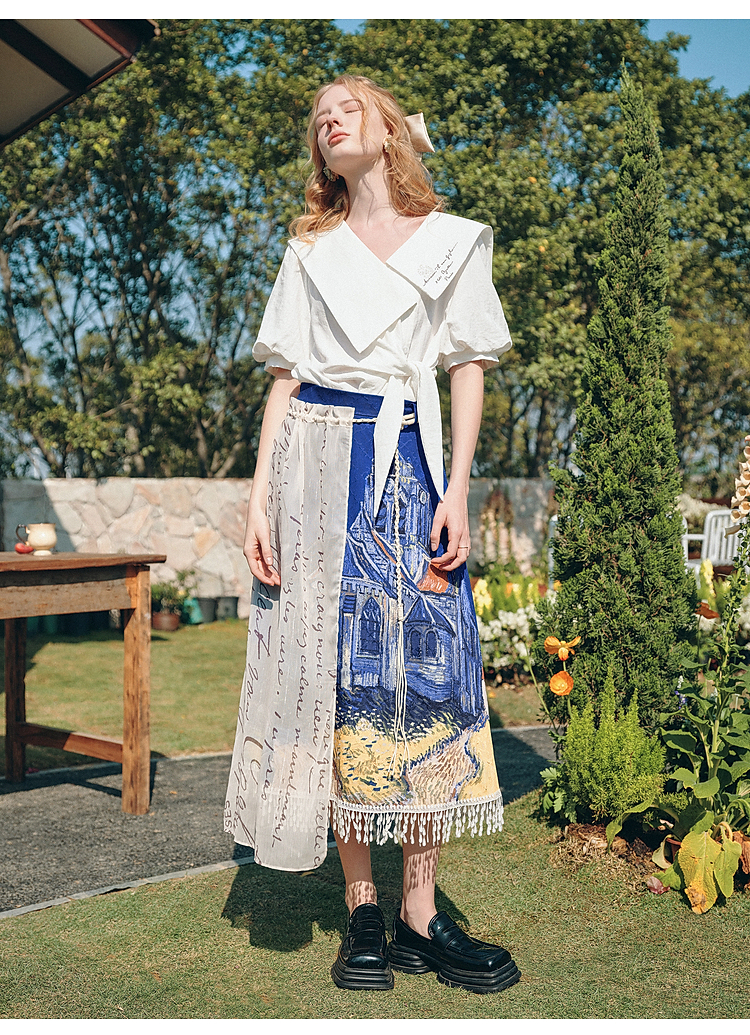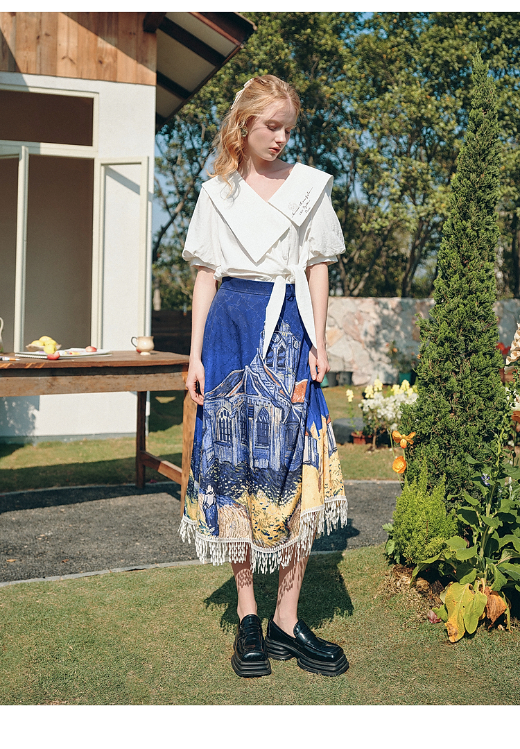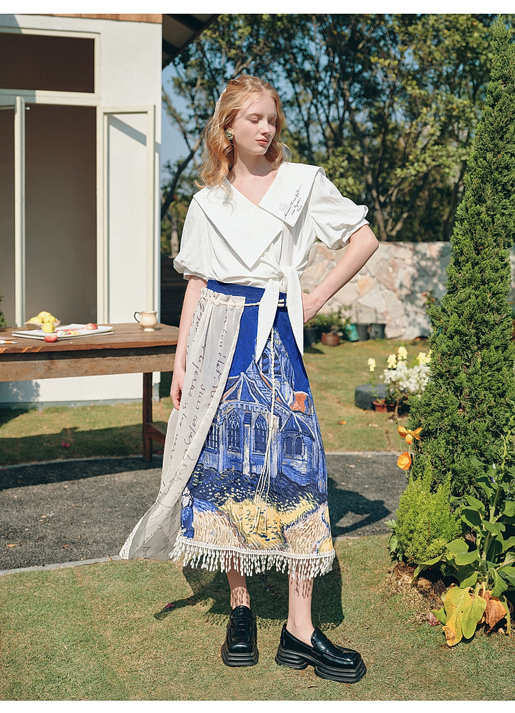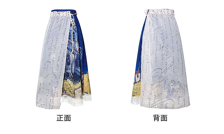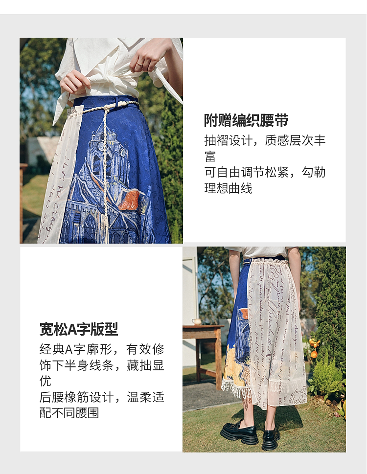 两三事梵高文艺 无声对白 2026春季新款可拆搭片流苏印花半身裙