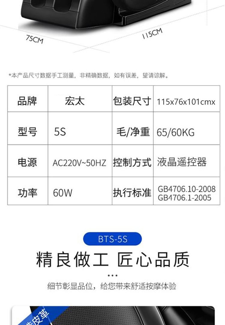 宏太带蓝牙音乐L导轨气囊揉捏按摩椅【包邮到家】
