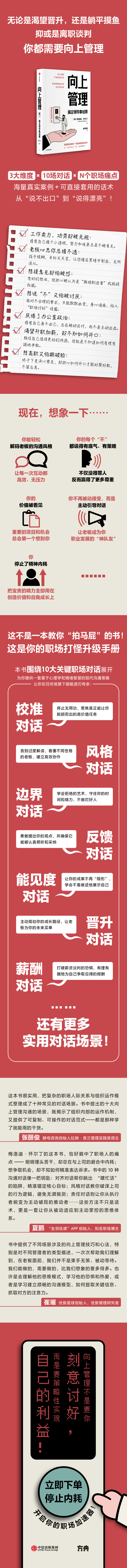 如果你想和上级处好关系,主动掌控自己的职业发展,这本书绝对值得一读。它既有大局观,又有实操性,是本很靠谱的职场指南。