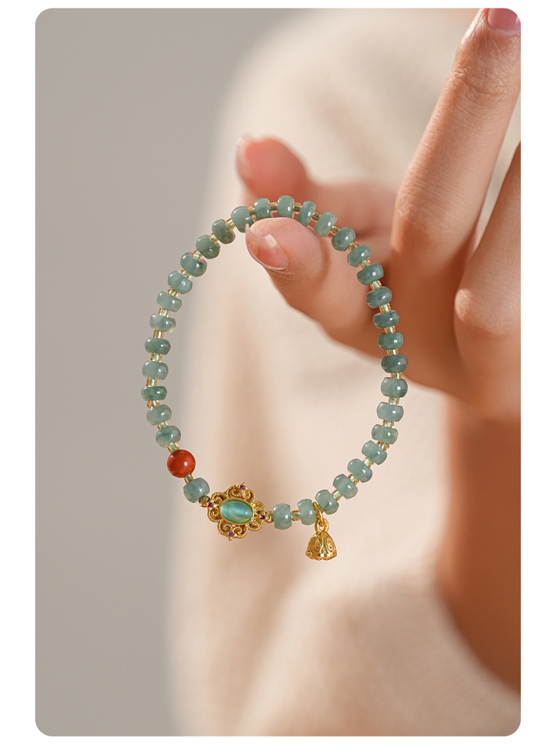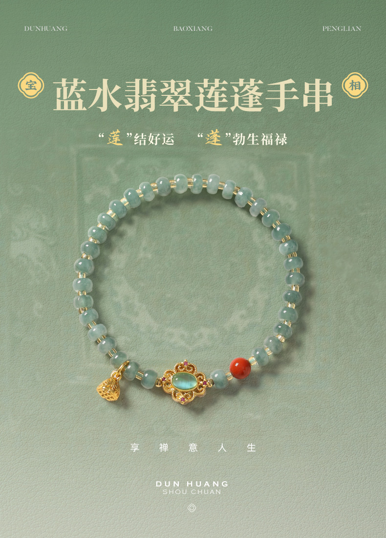 敦煌【宝相·蓝水翡翠莲蓬手串】中式国风手串配饰 敦煌福泽小众轻奢手串