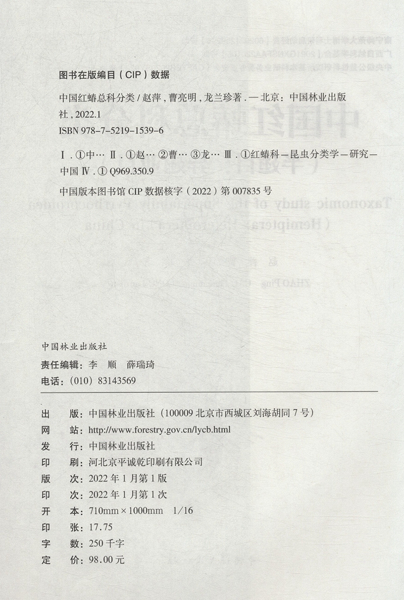 中国红蝽总科分类(半翅目异翅亚目) 赵萍//曹亮明//龙兰珍 1539 中国林业出版社