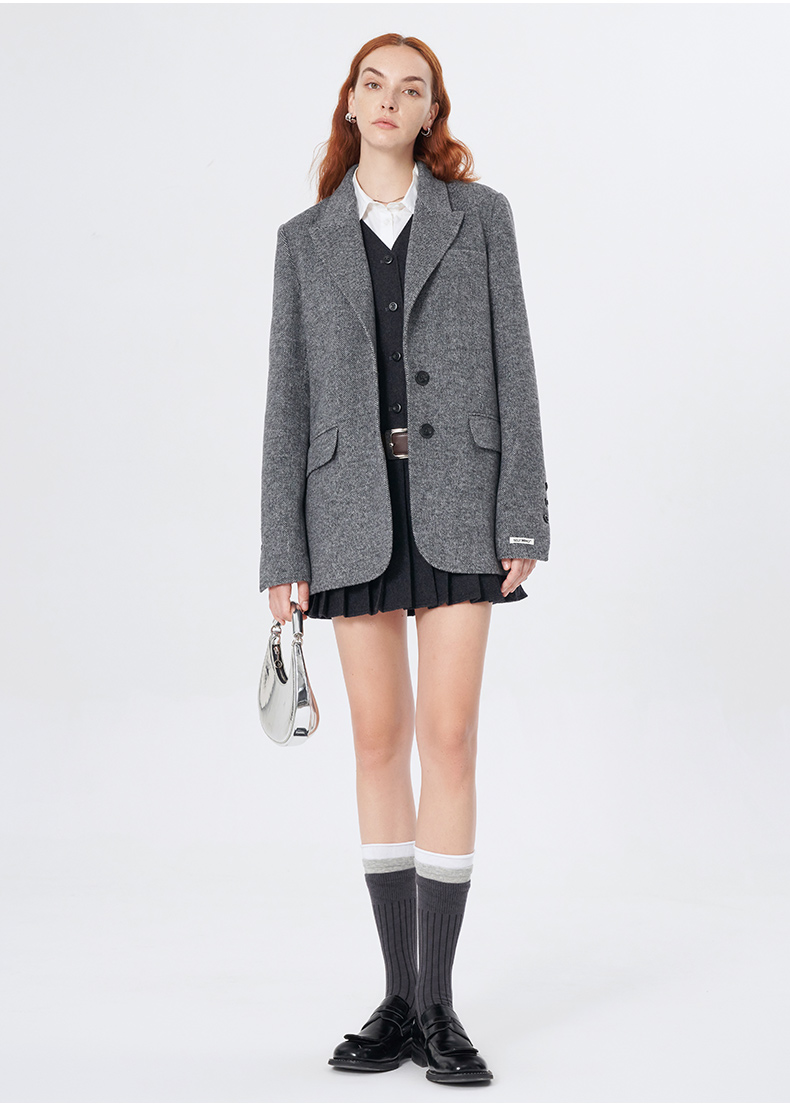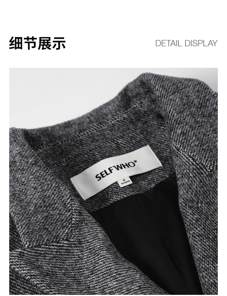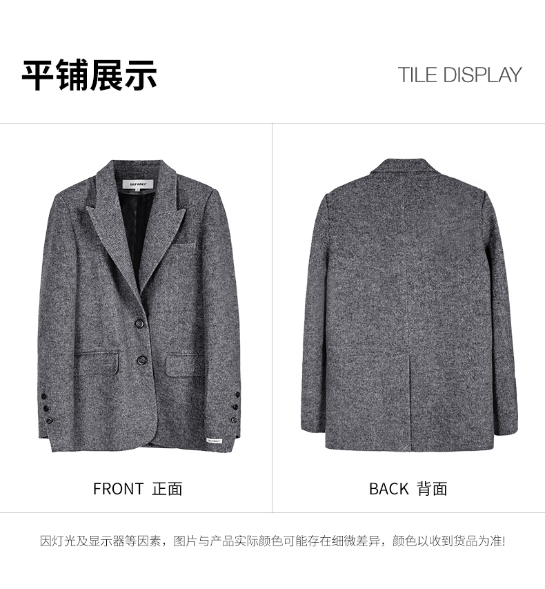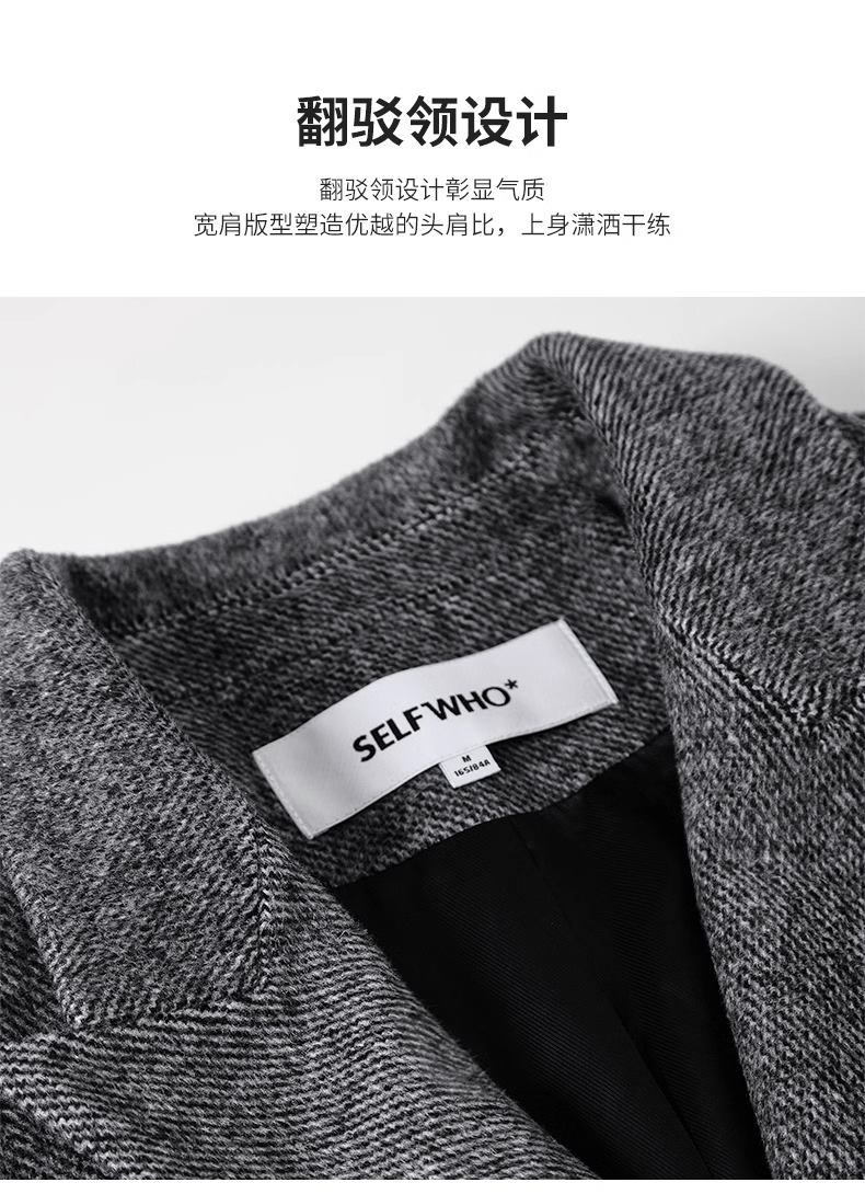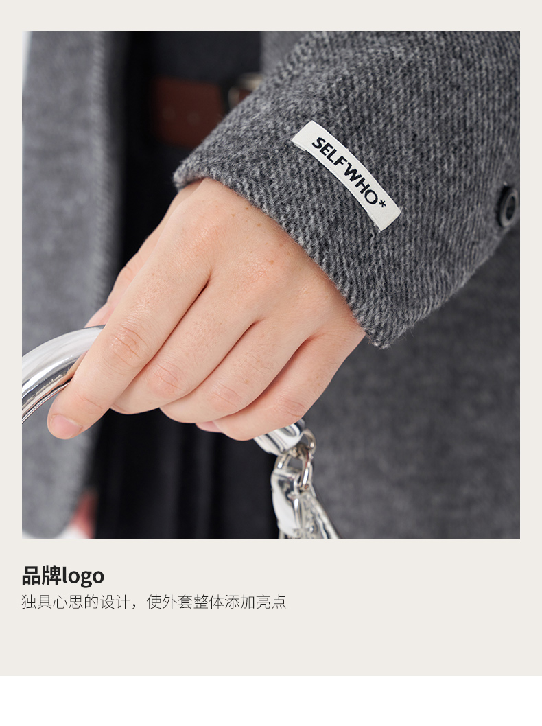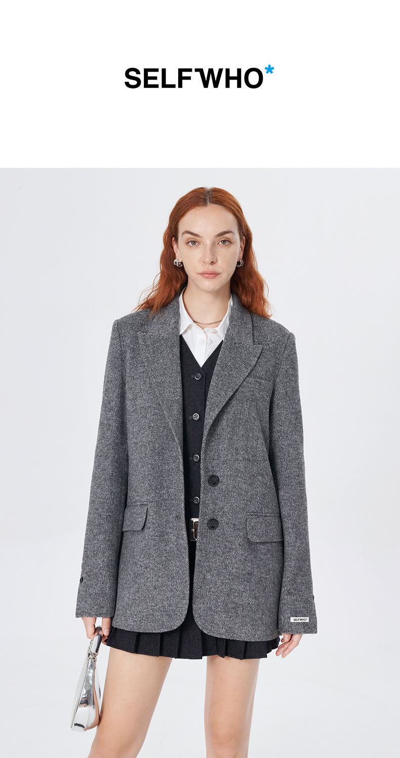 Self Who灰色羊毛西装外套女冬季2023新款高级感宽松休闲毛呢大衣