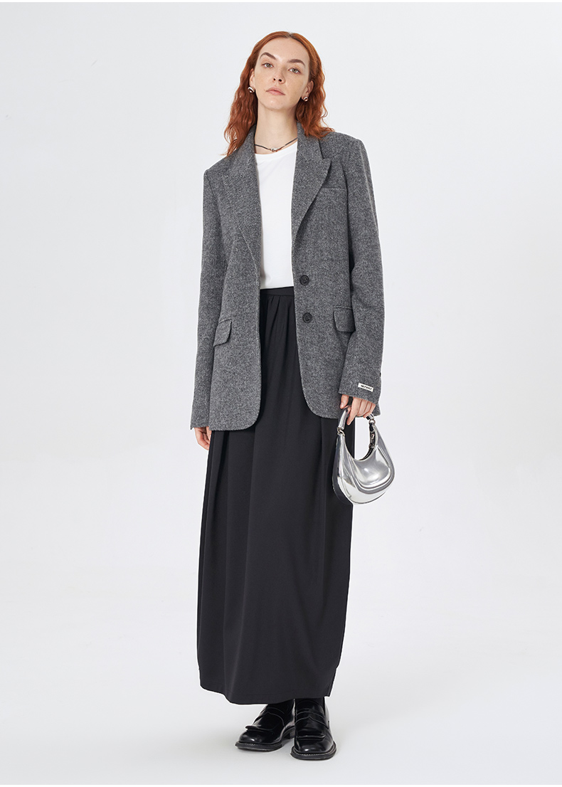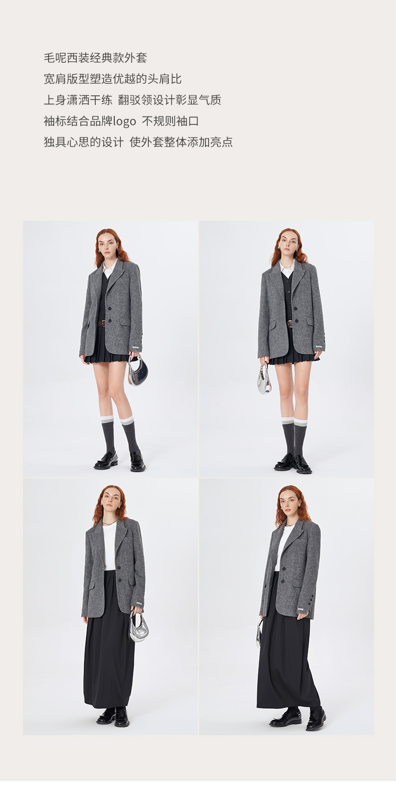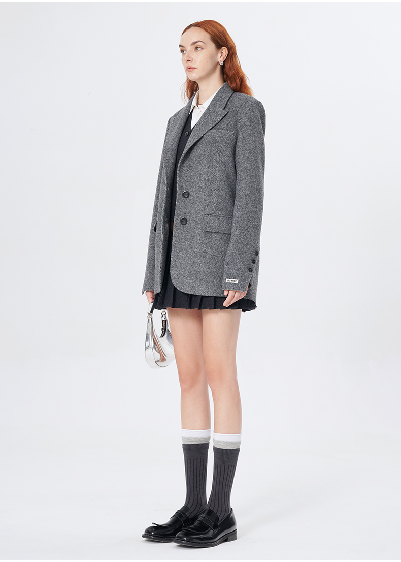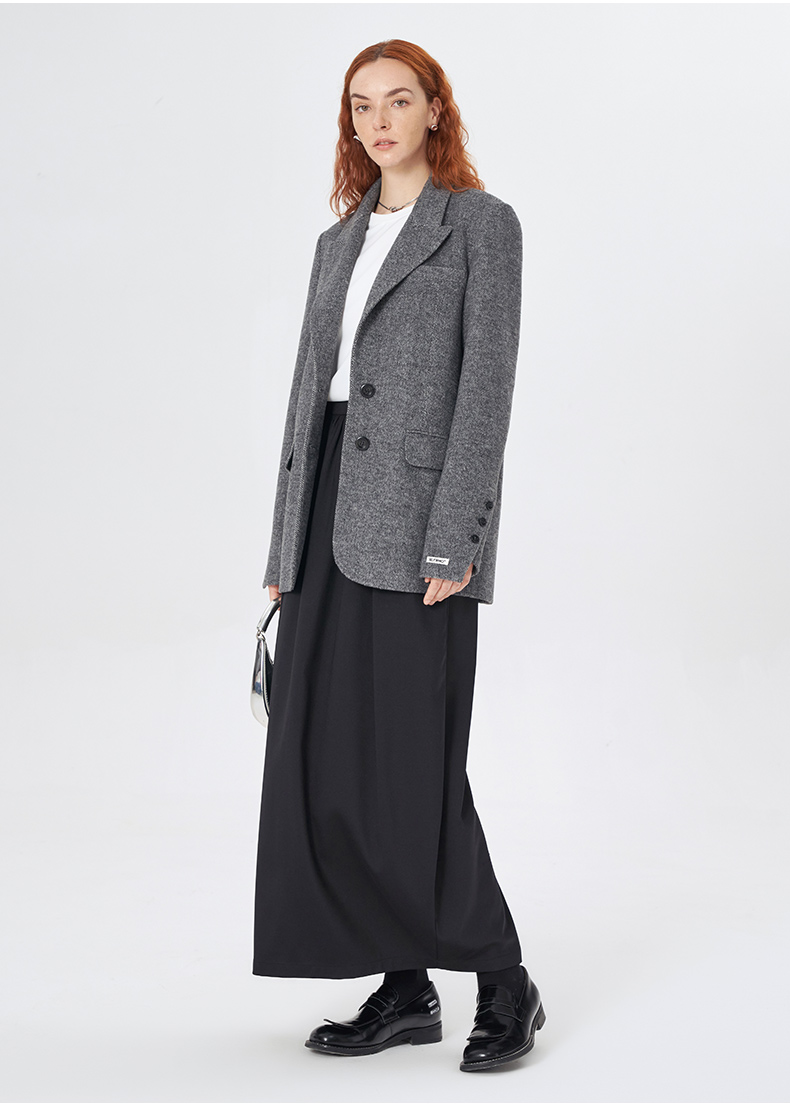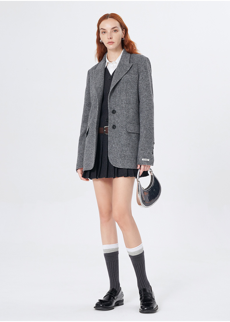 Self Who灰色羊毛西装外套女冬季2023新款高级感宽松休闲毛呢大衣
