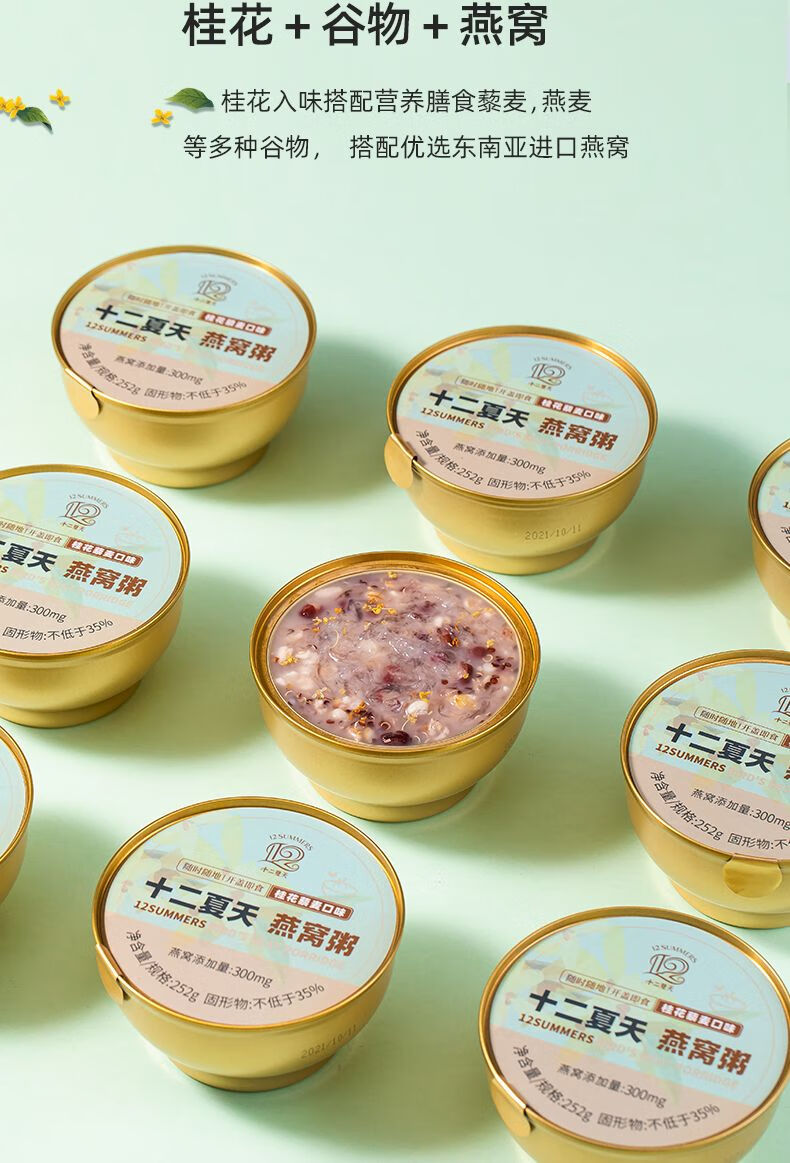 十二夏天 燕窝桂花藜麦粥 252g x 6碗/盒