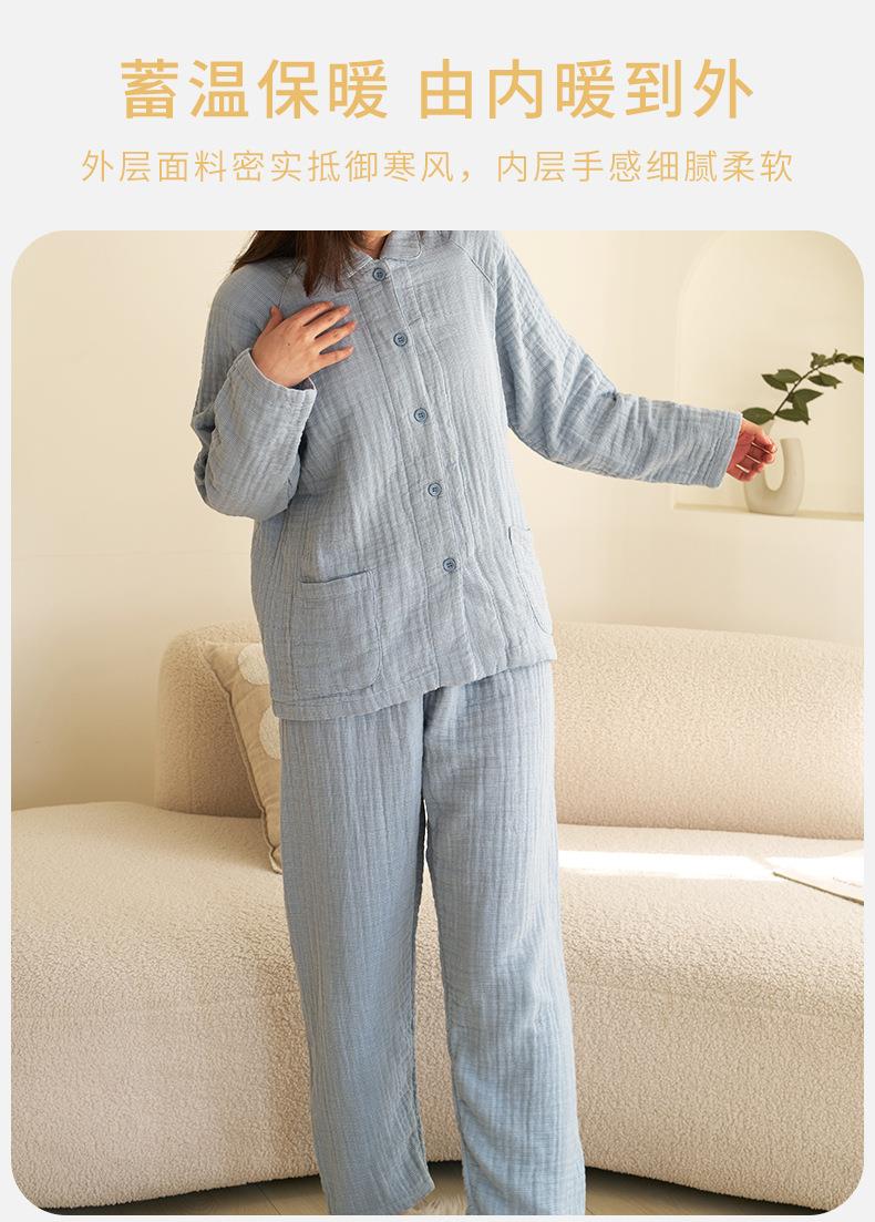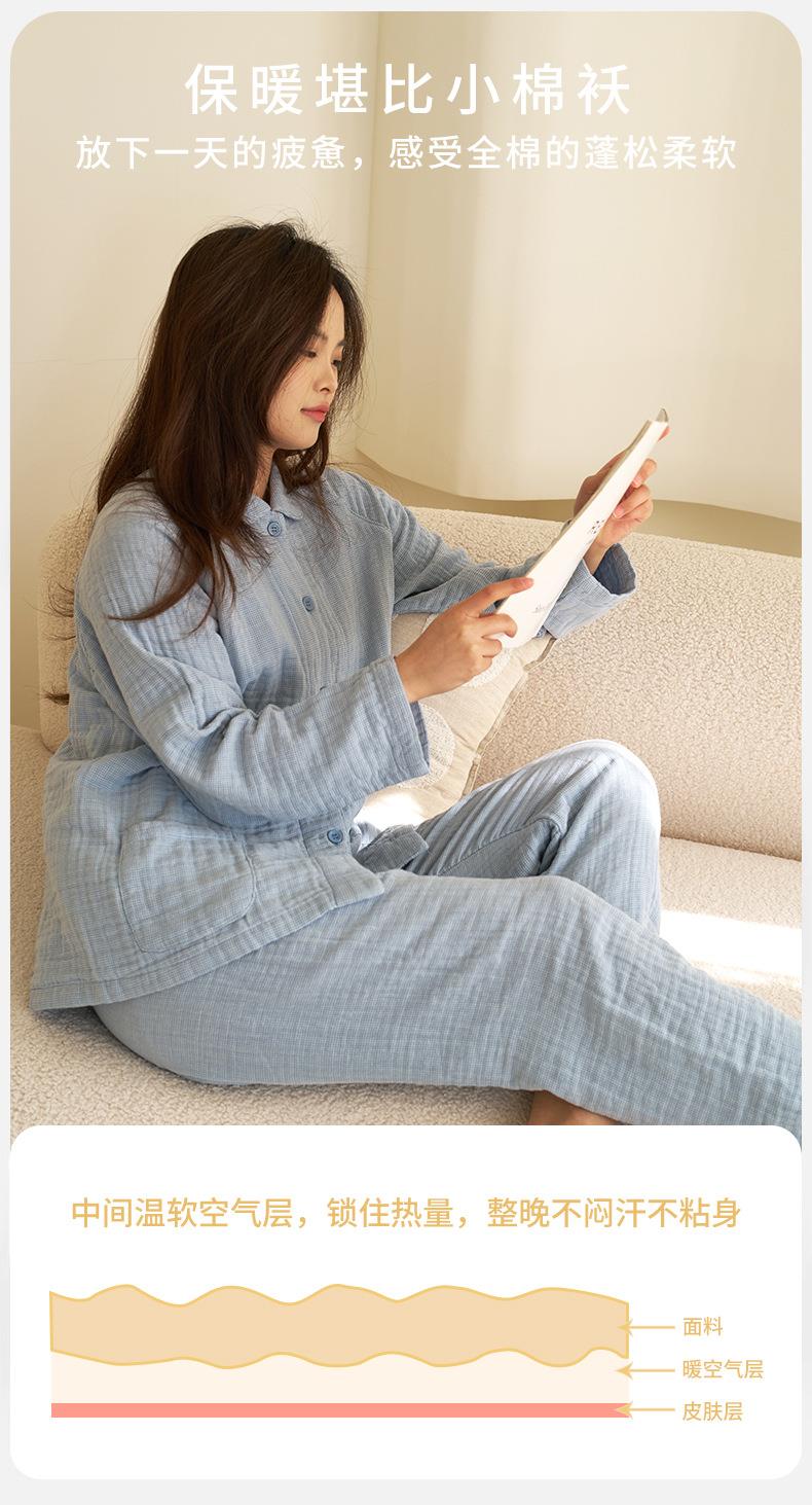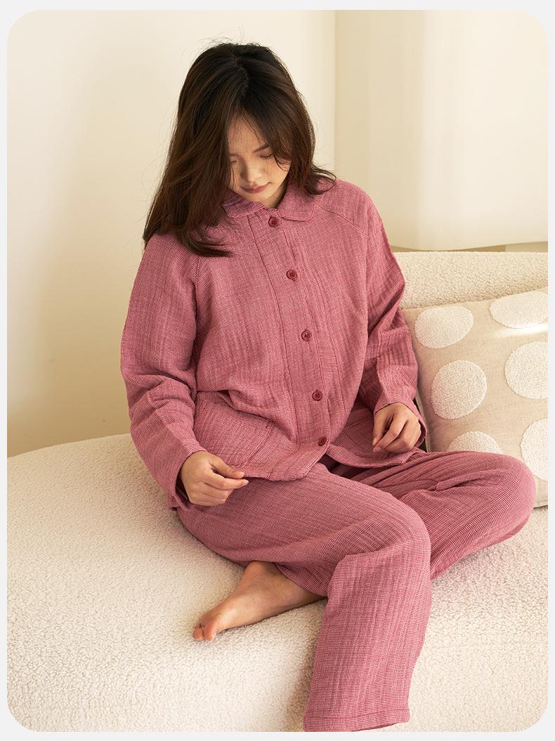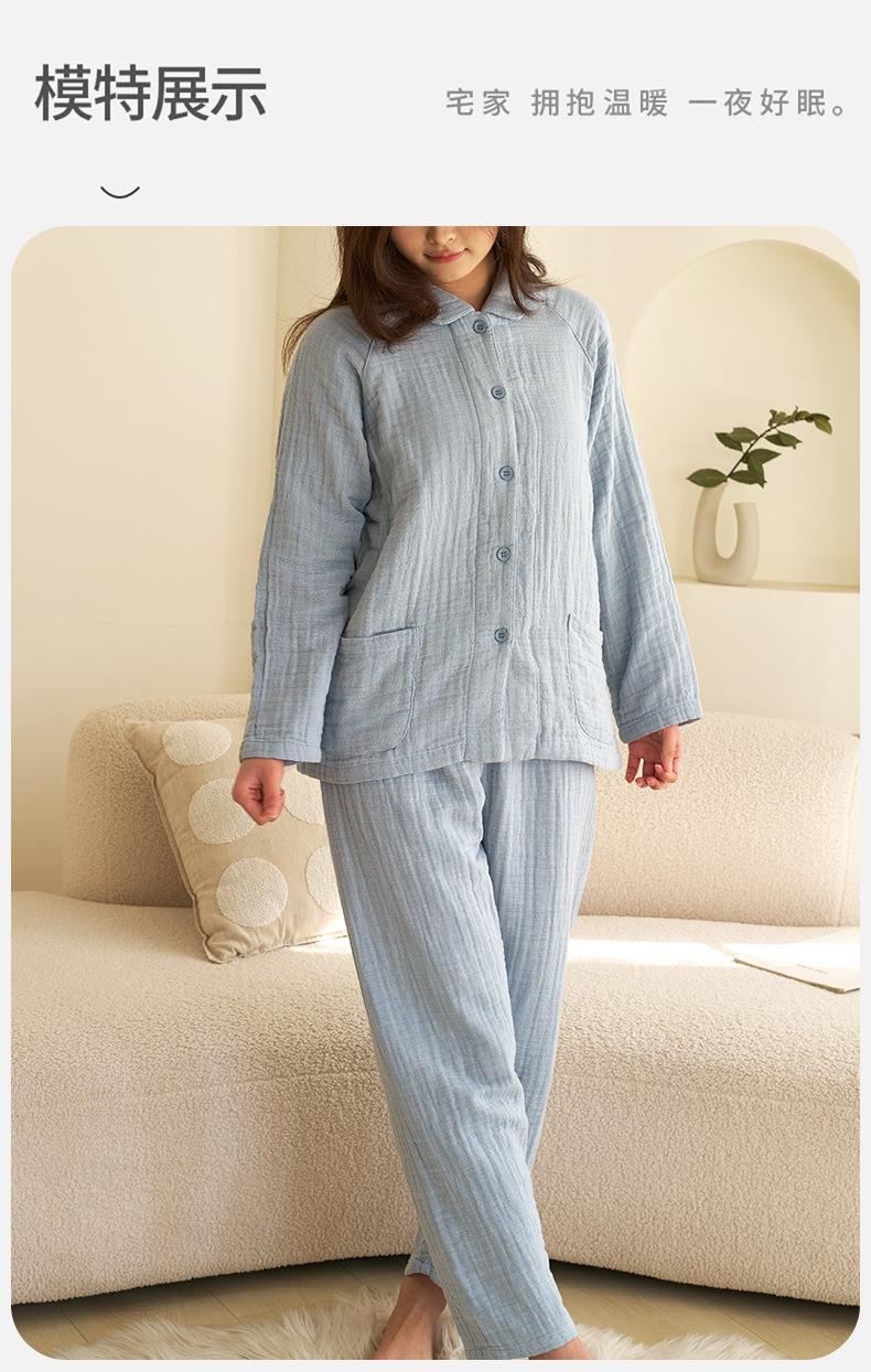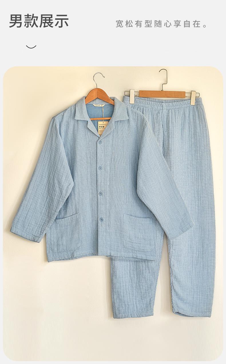 【60S全棉四层纱家居服】 A类母婴级日系秋冬款 情侣纯棉睡衣休闲套装