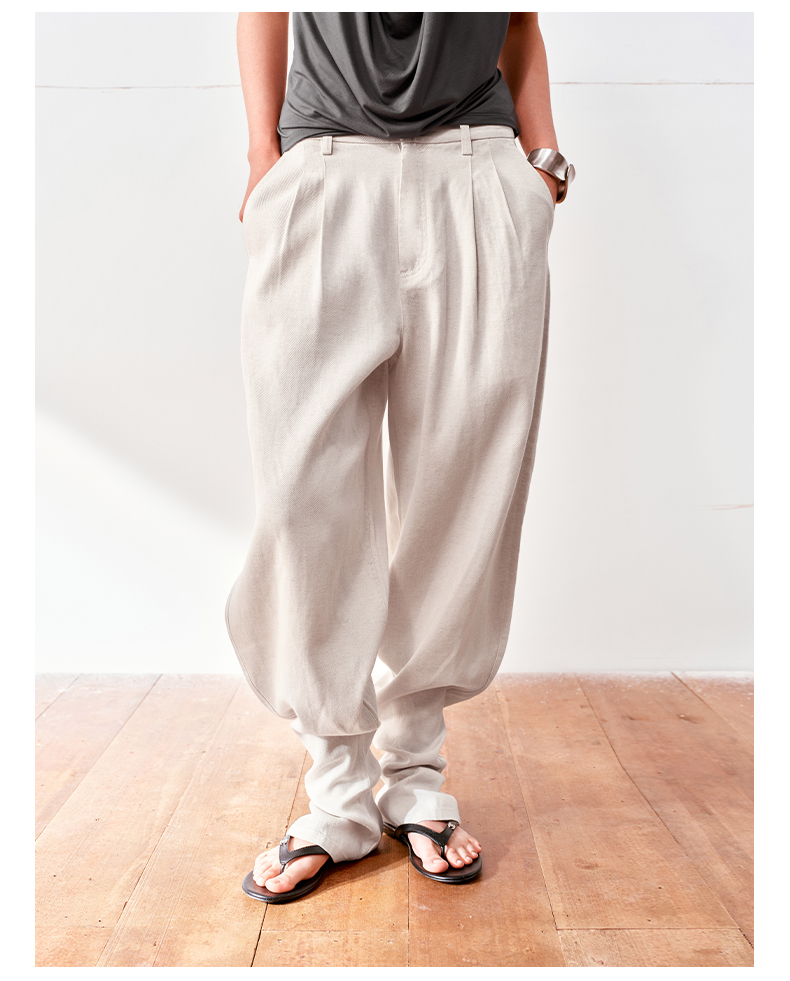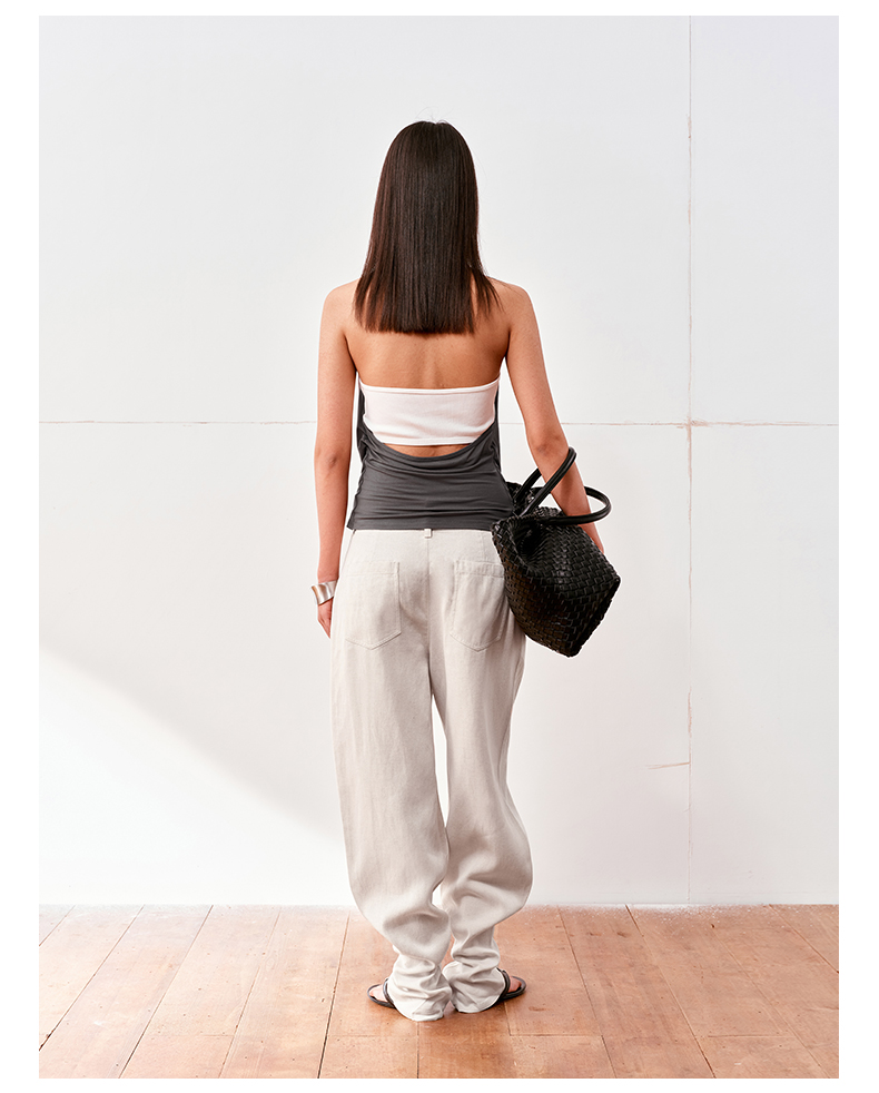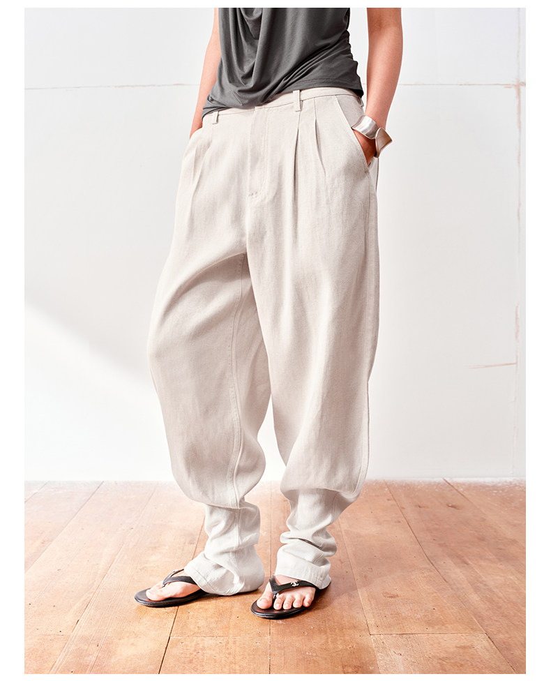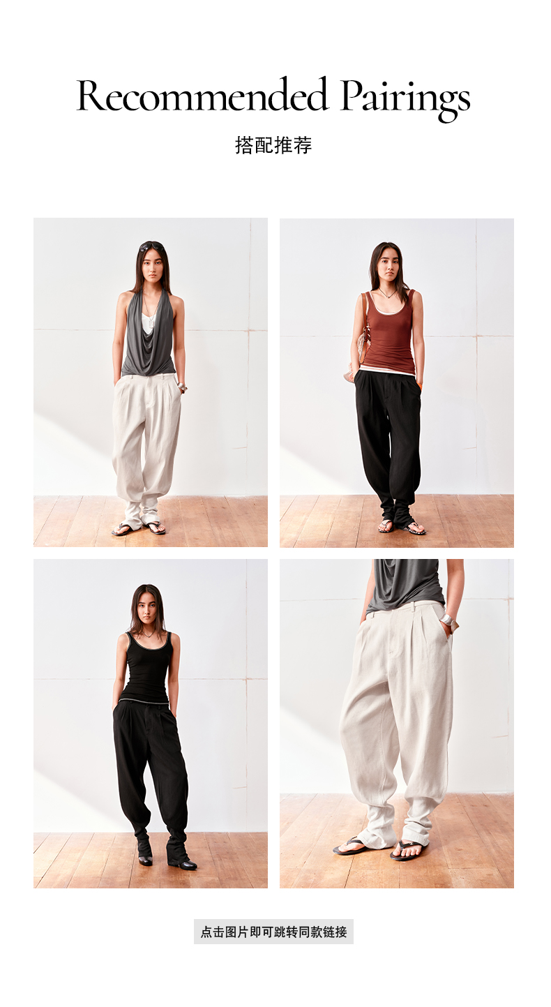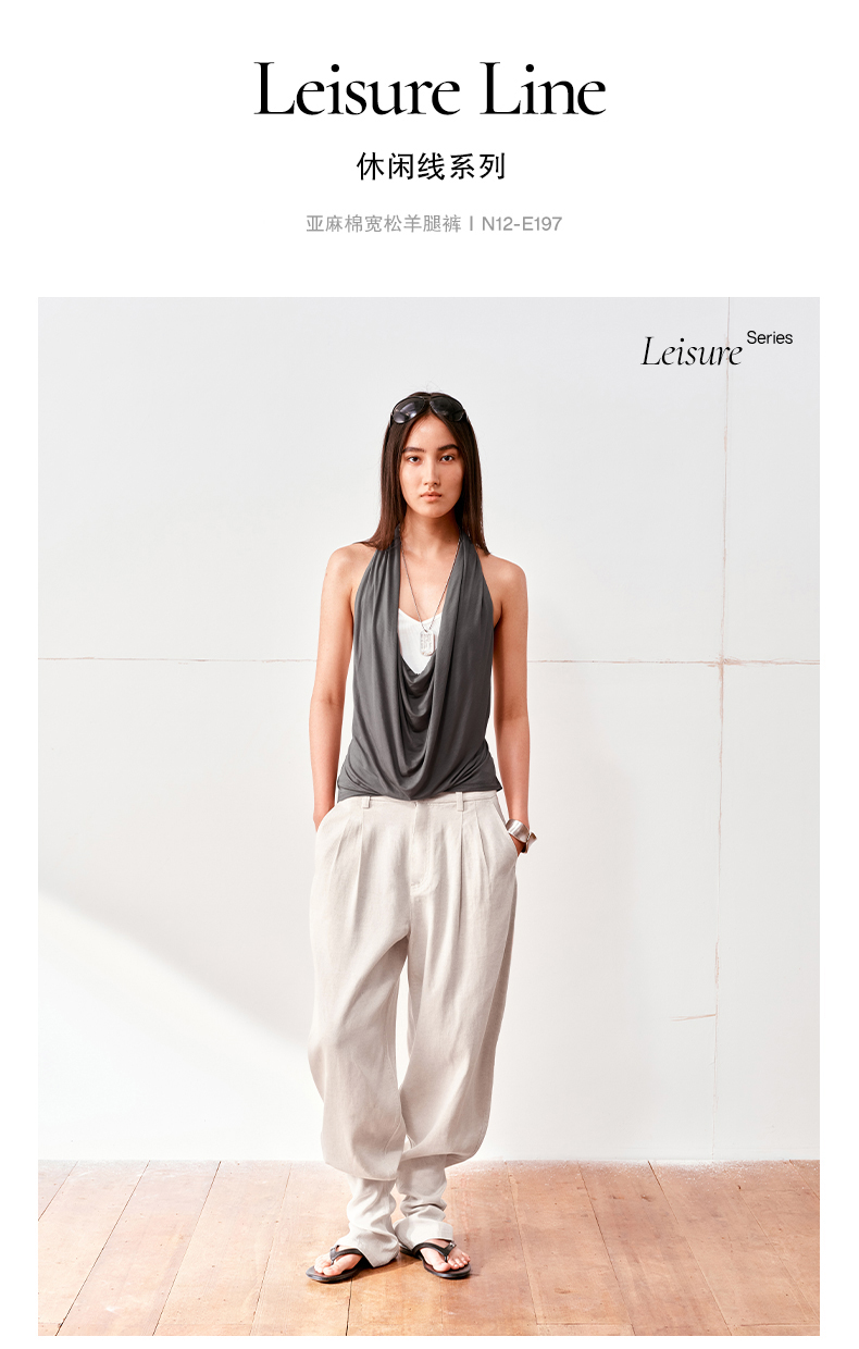 NUTH亚麻中腰休闲宽松阔腿羊腿裤女