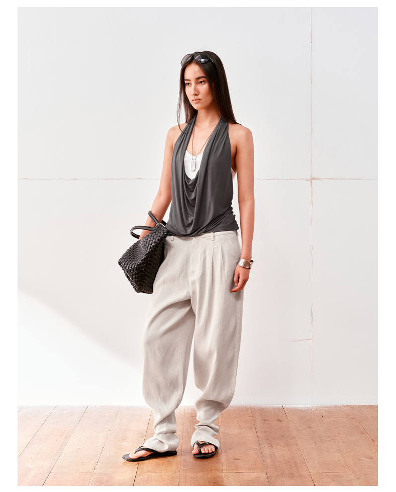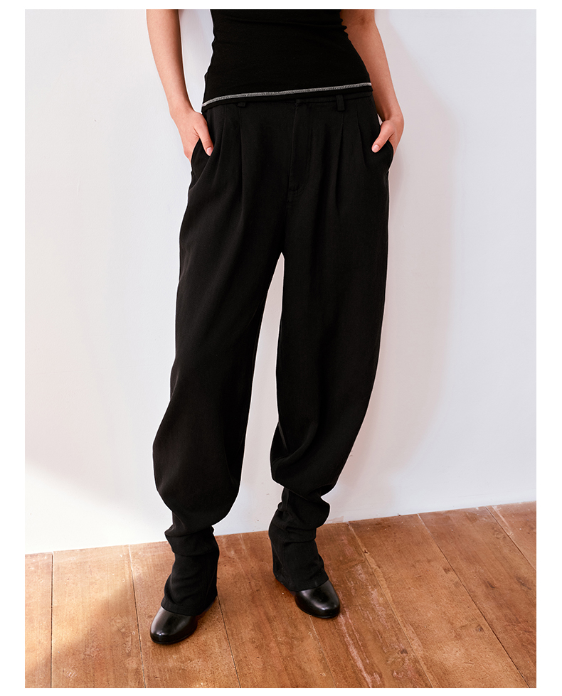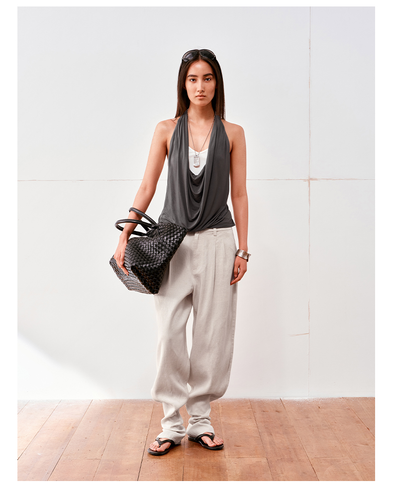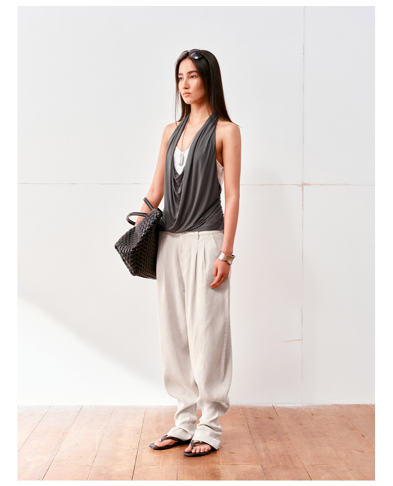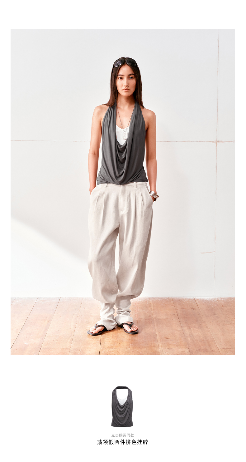 NUTH亚麻中腰休闲宽松阔腿羊腿裤女