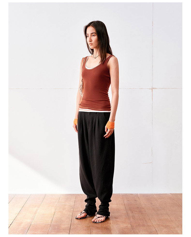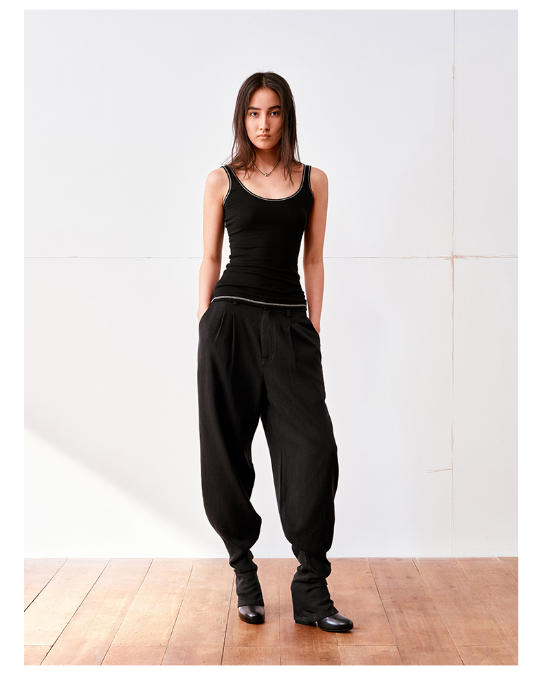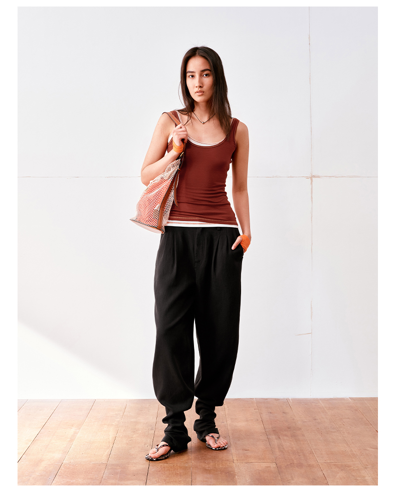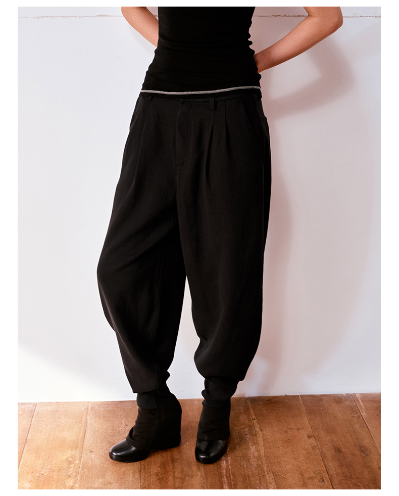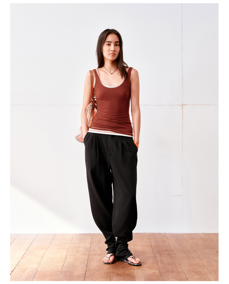 NUTH亚麻中腰休闲宽松阔腿羊腿裤女