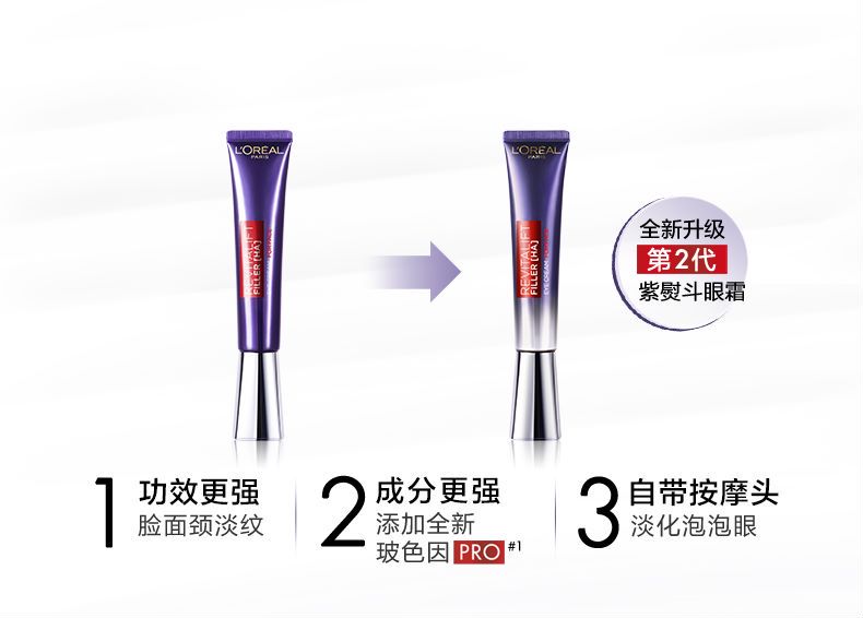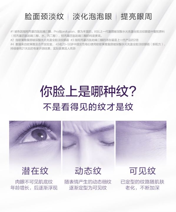 欧莱雅复颜玻尿酸水光充盈全脸淡纹眼霜30ml(紫熨斗)(效期至26年8月)