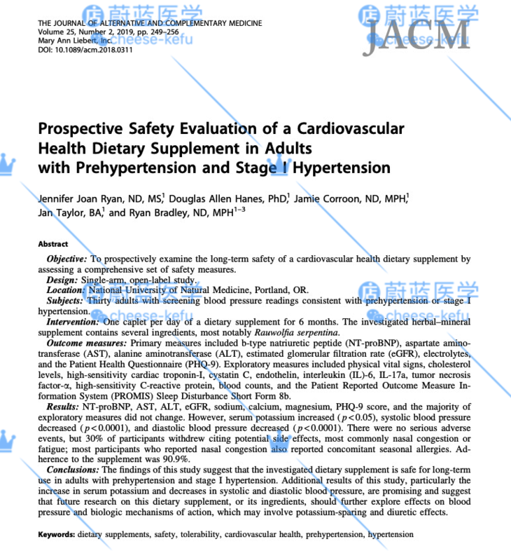 Carditone 草本成分还包括Rauwolfia serpentine 印度舌根木提取物的提取物的组合。