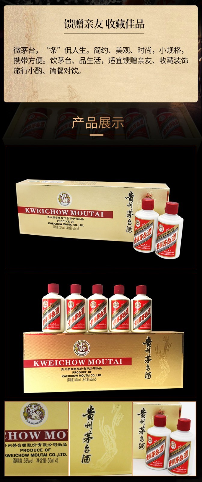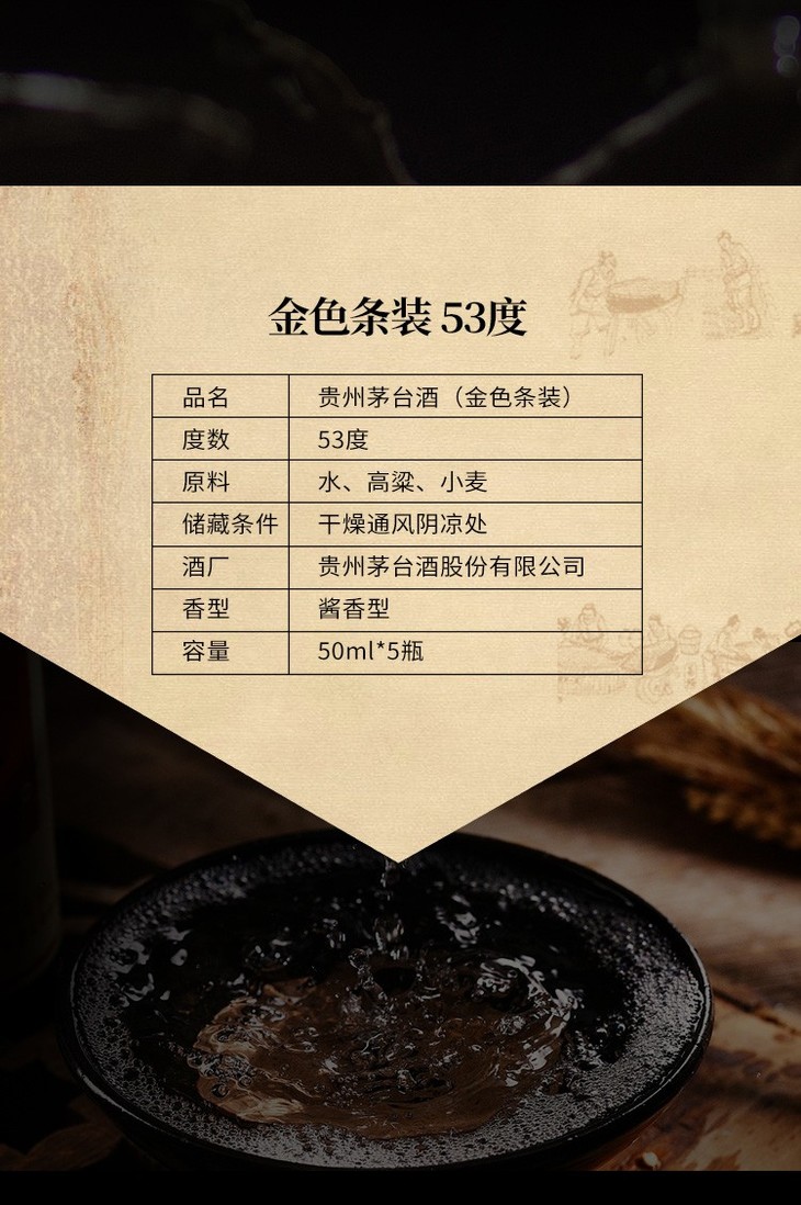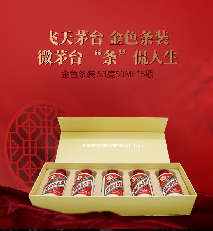 【推荐】茅台 飞天茅台条茅(金条) 酱香型 53度 50ml x5 礼盒装