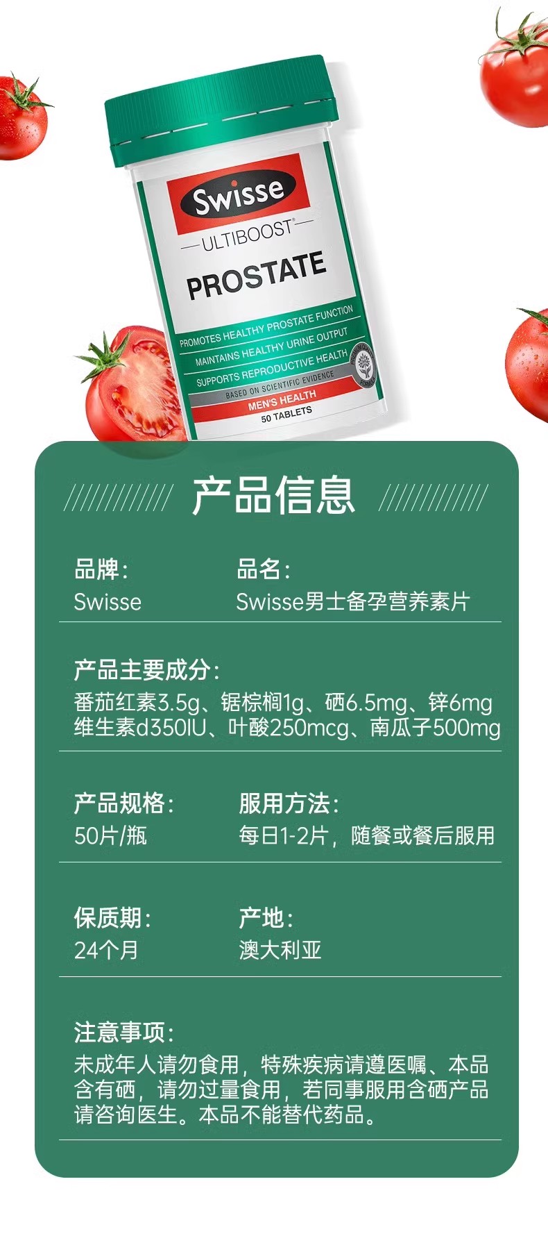 【保税仓】Swisse斯维诗锯棕榈番茄红素片前列康50片