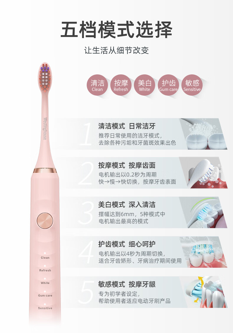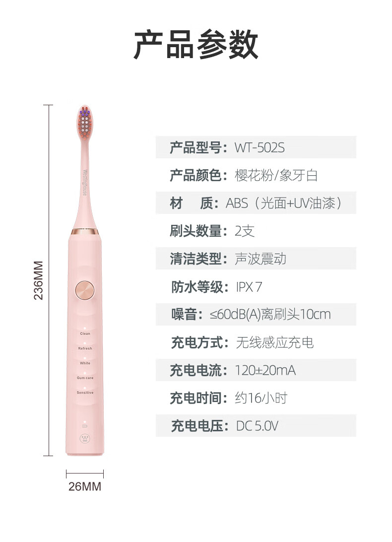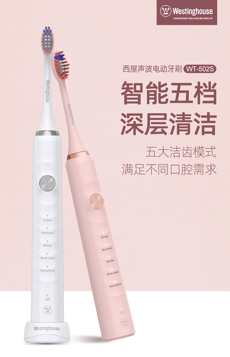 西屋(Westinghouse)声波电动牙刷家用充电式软毛牙刷送男生女生礼物 WT-502S