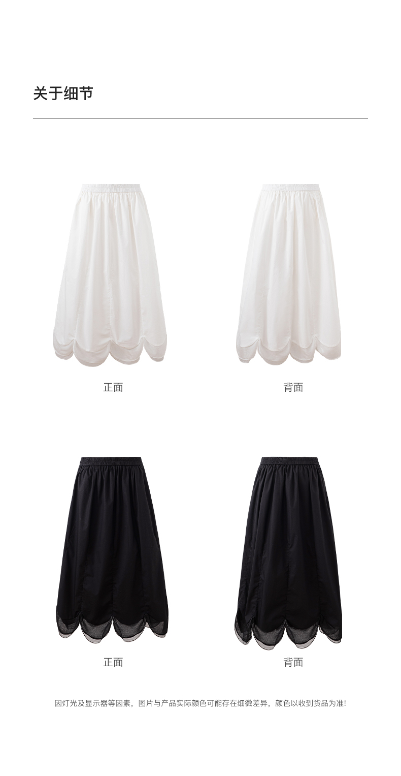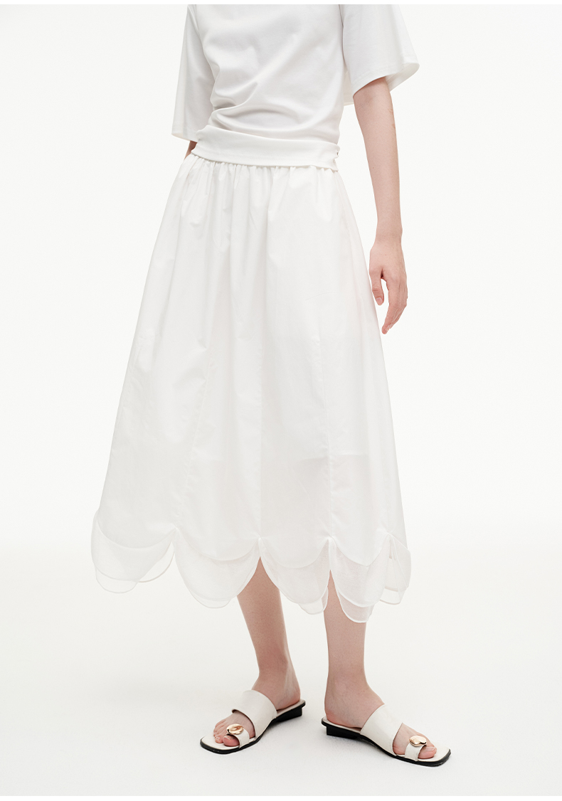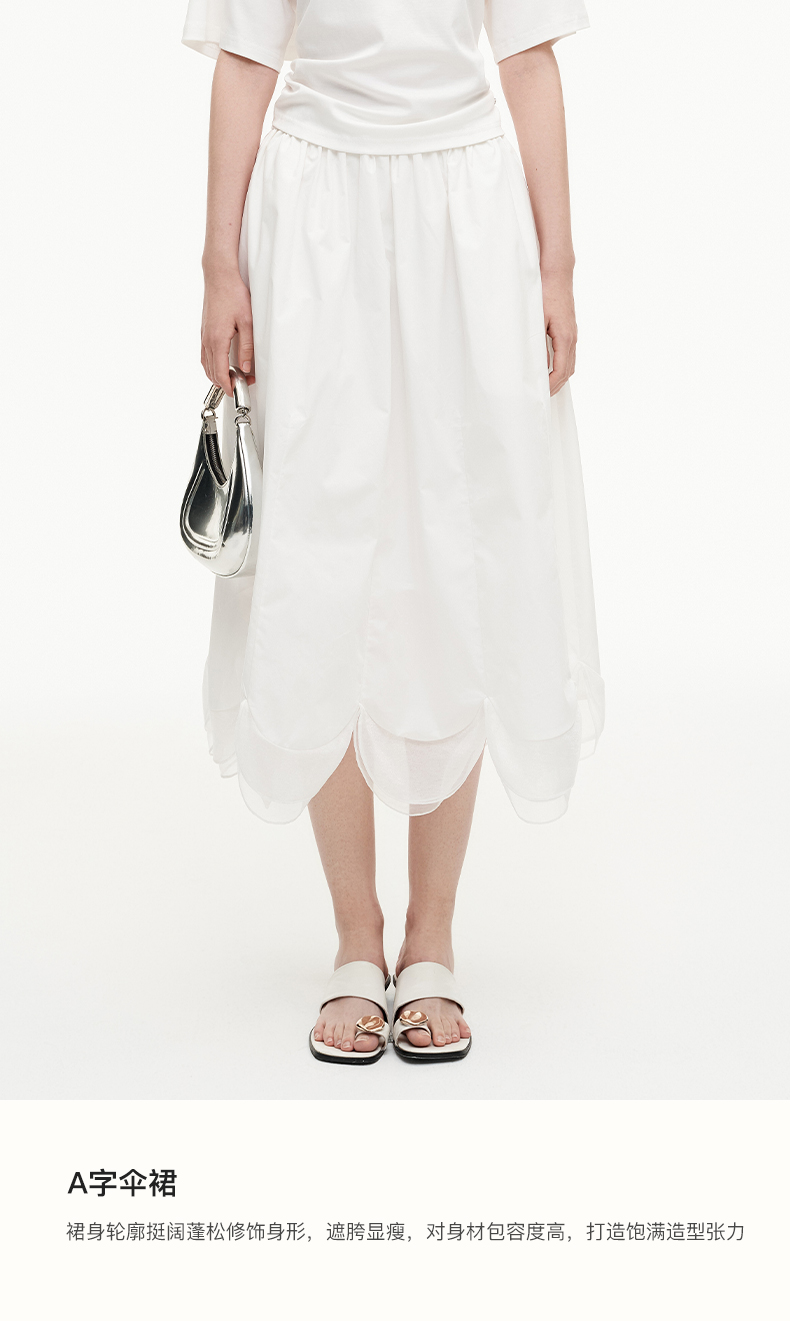 SELFWHO纯棉松紧腰半身裙女2025夏季新款花瓣型A字裙伞裙