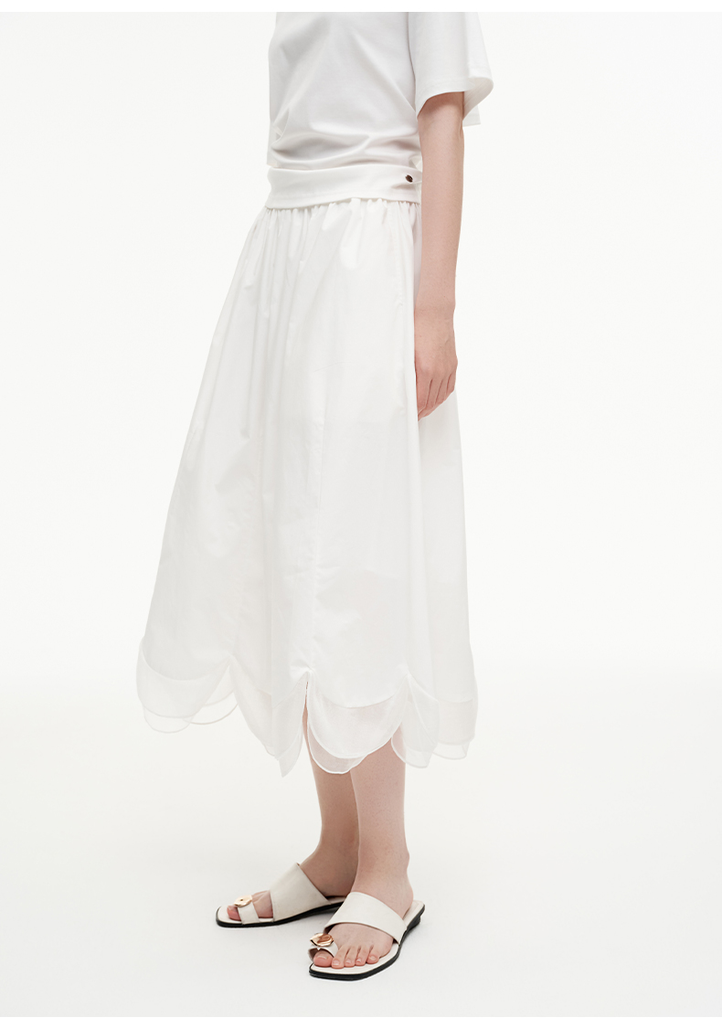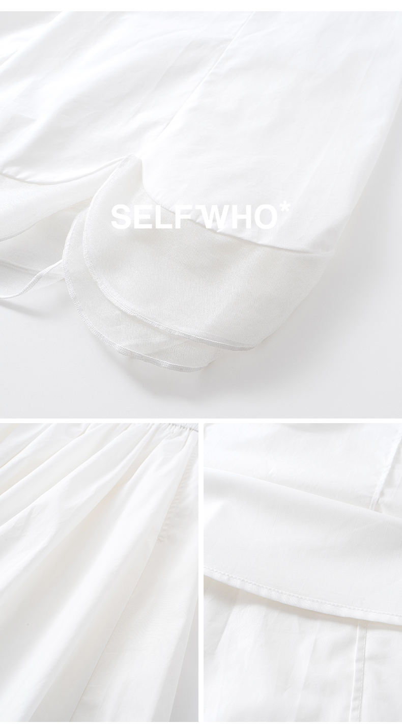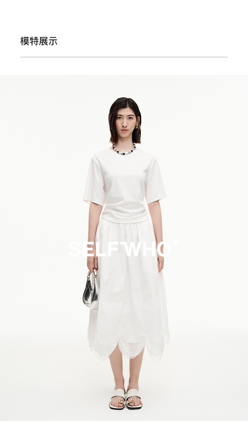 SELFWHO纯棉松紧腰半身裙女2025夏季新款花瓣型A字裙伞裙