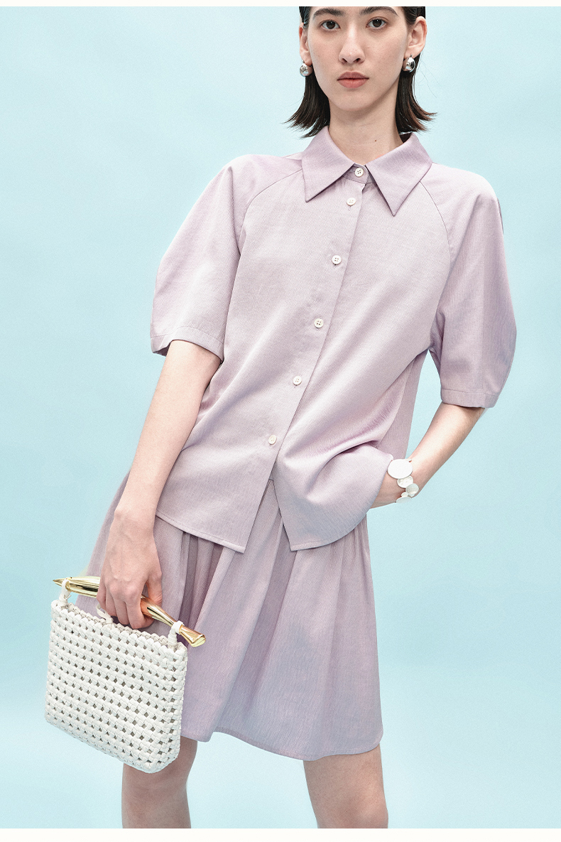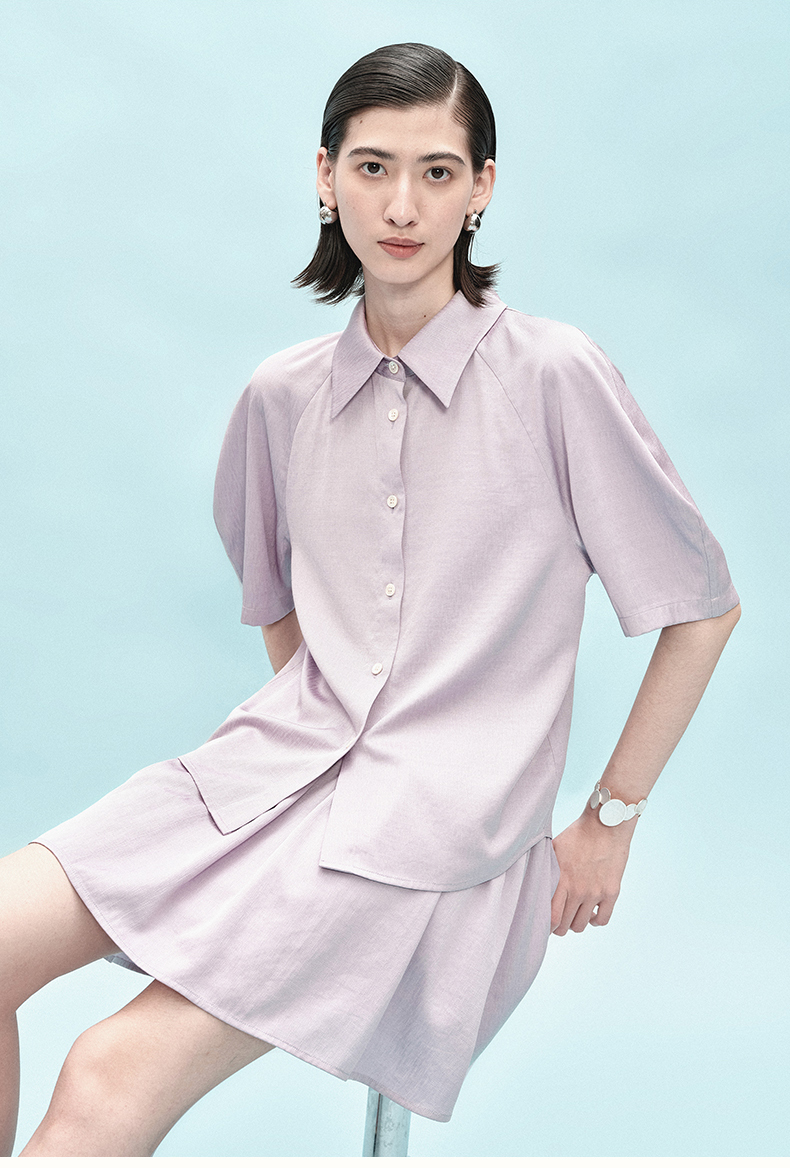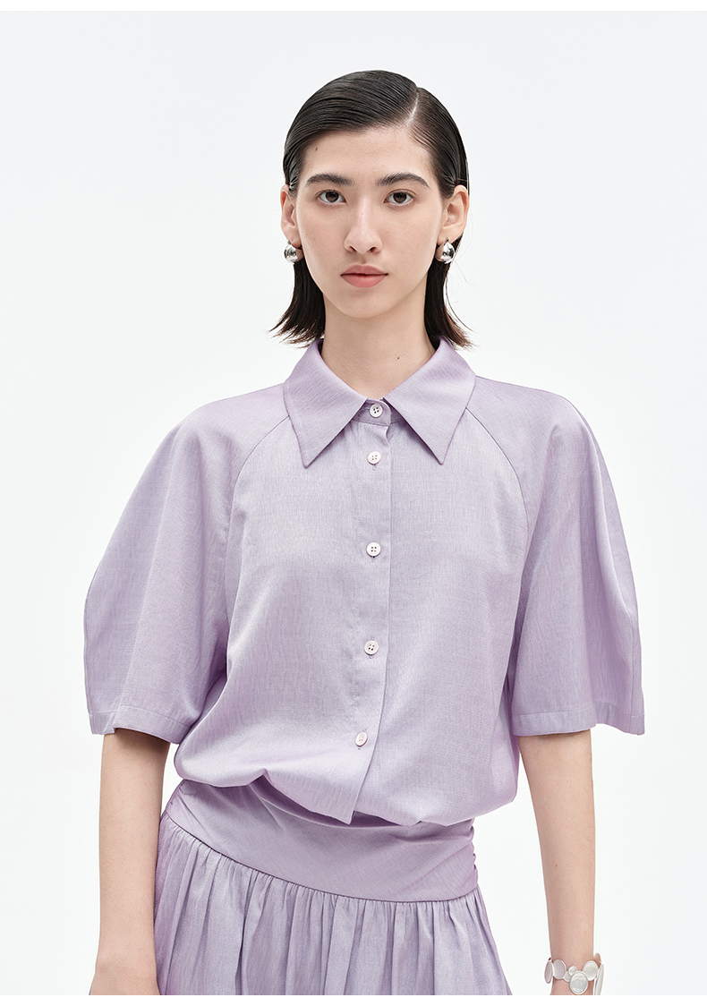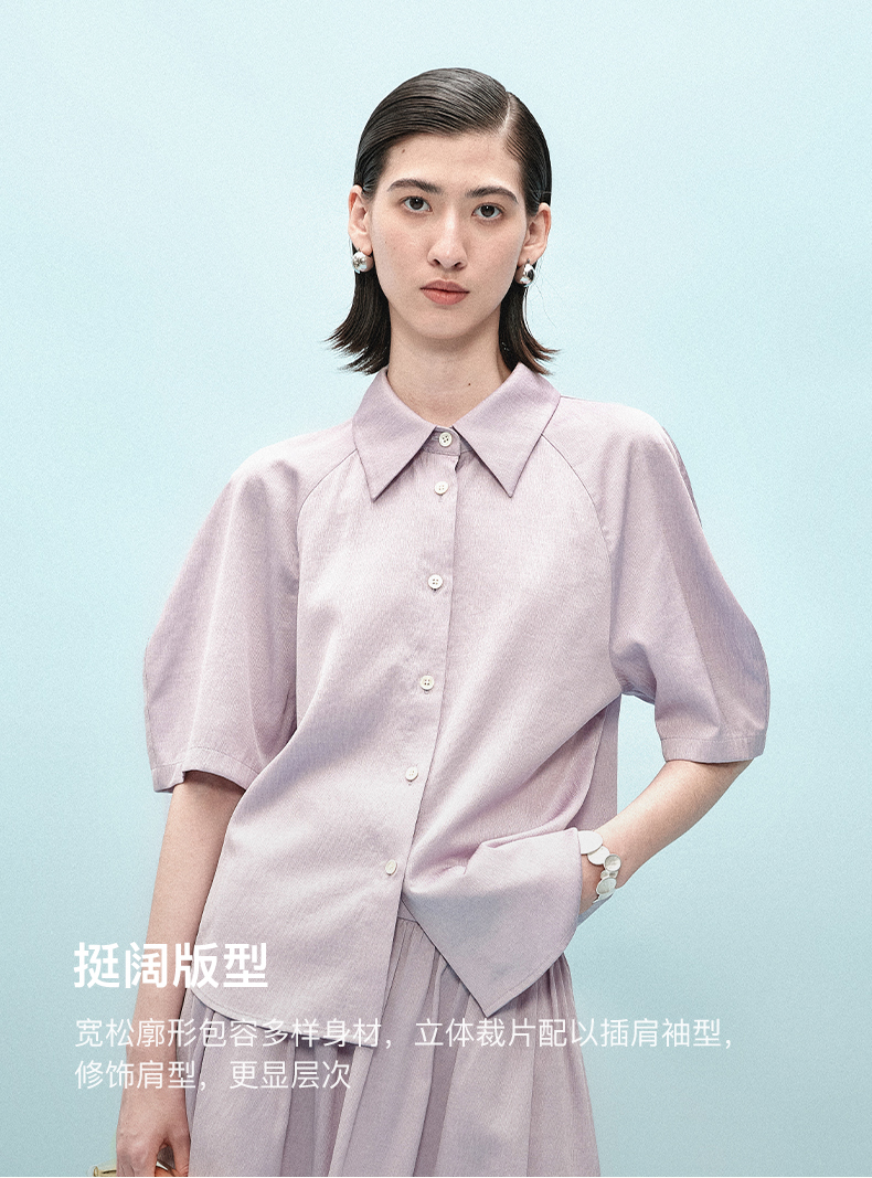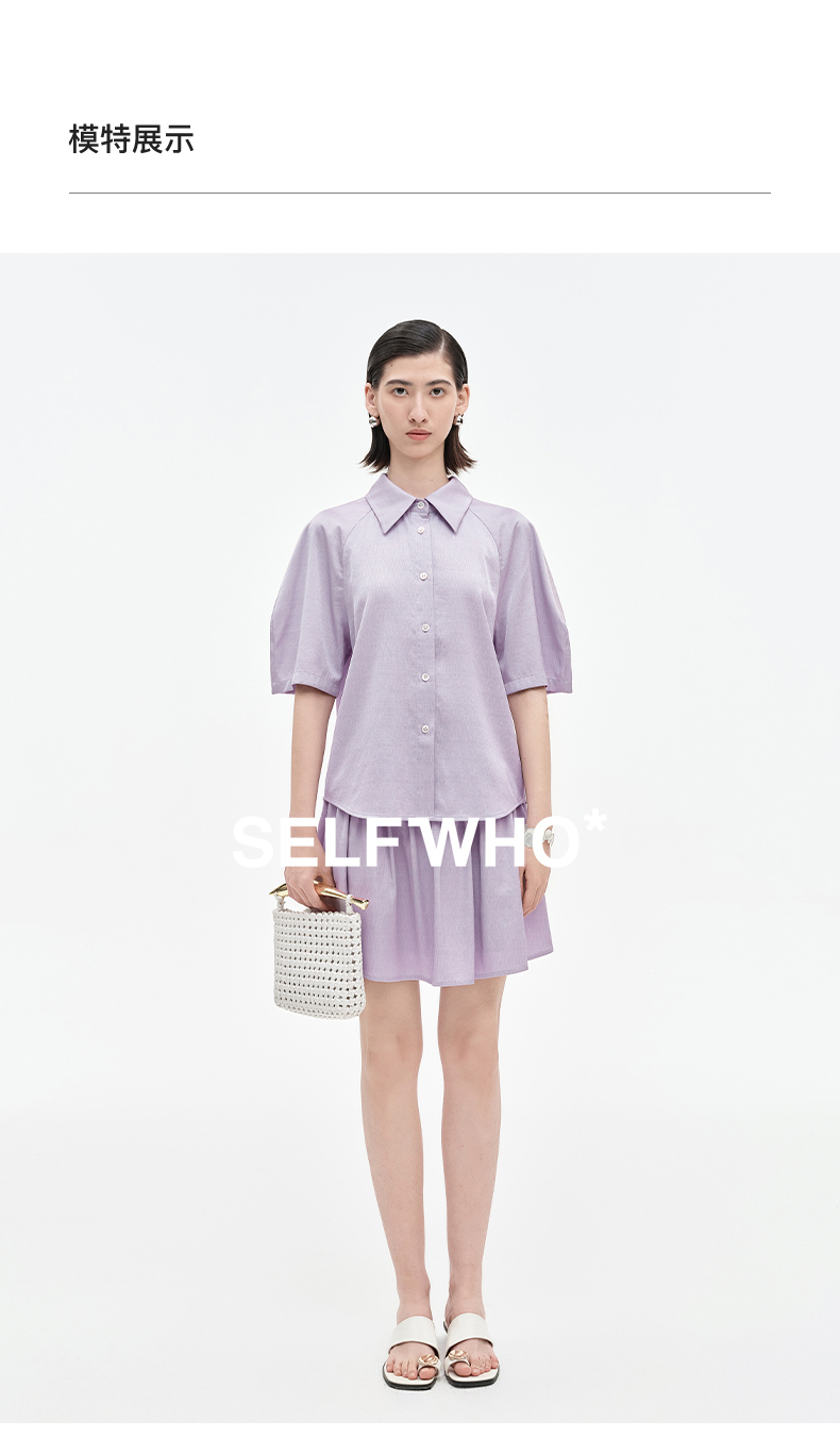SELFWHO醋酸天丝混纺插肩袖宽松衬衫女2025夏季新款爽滑肌理衬衣