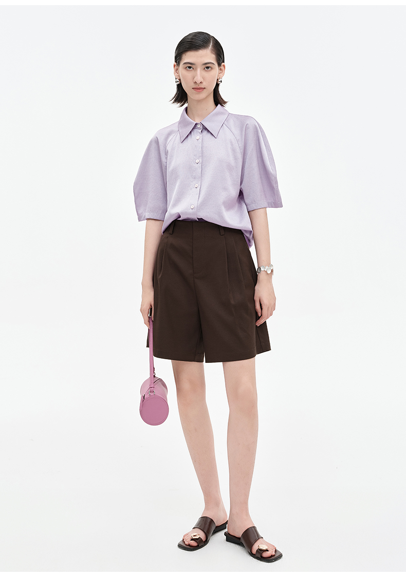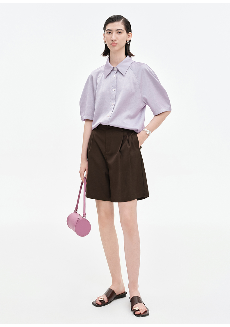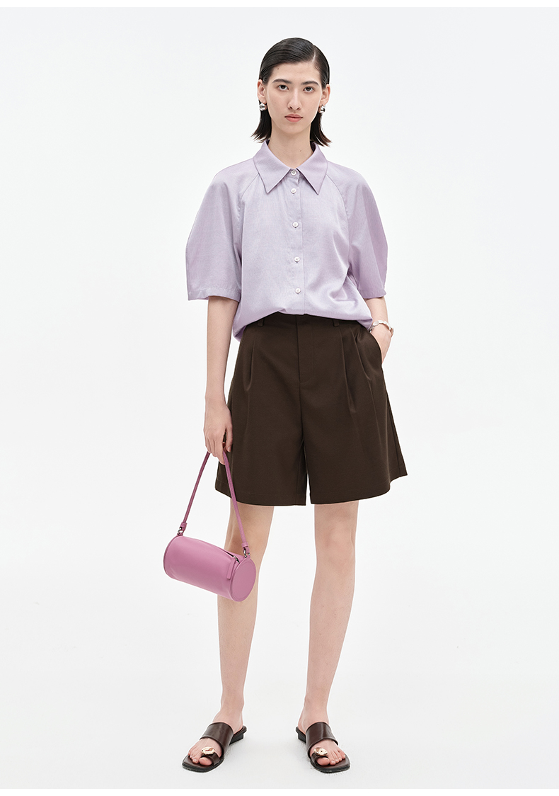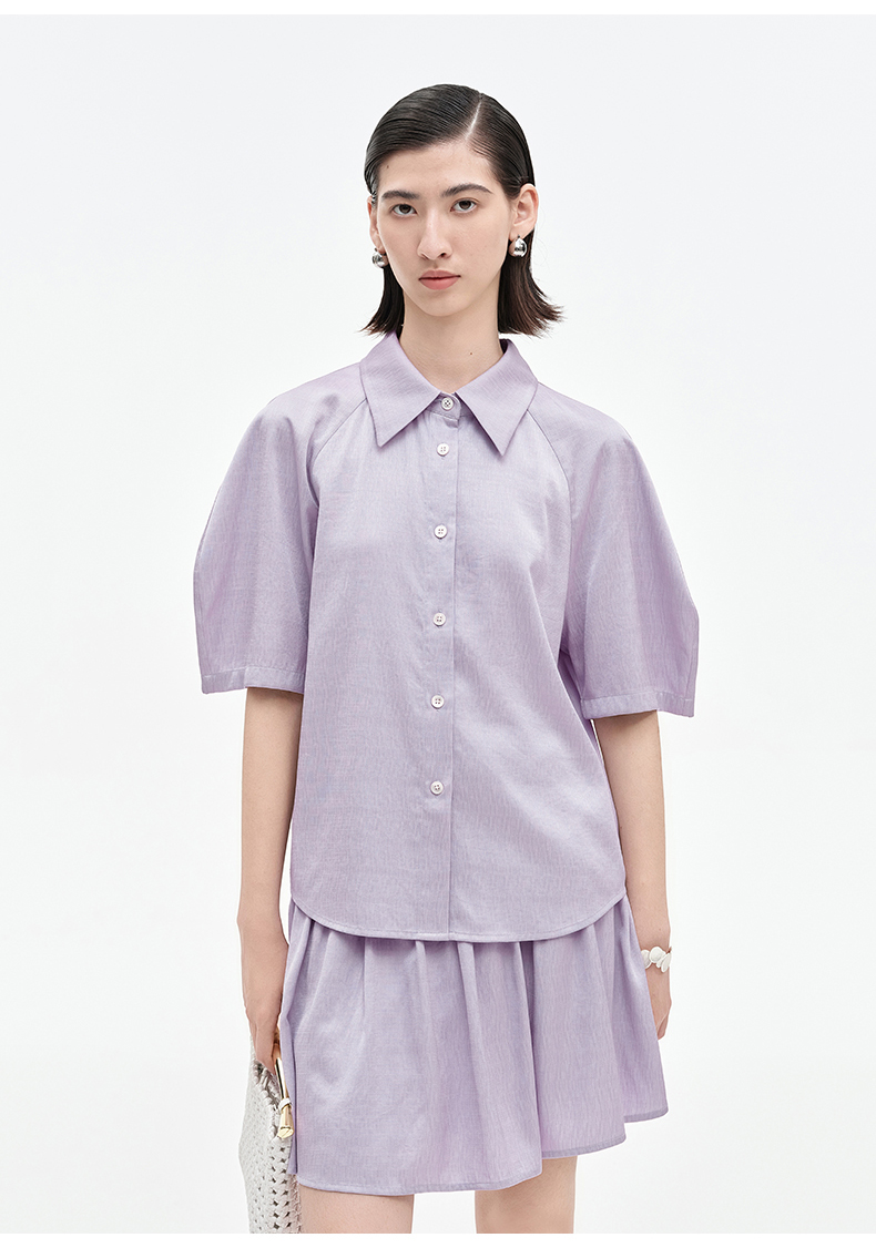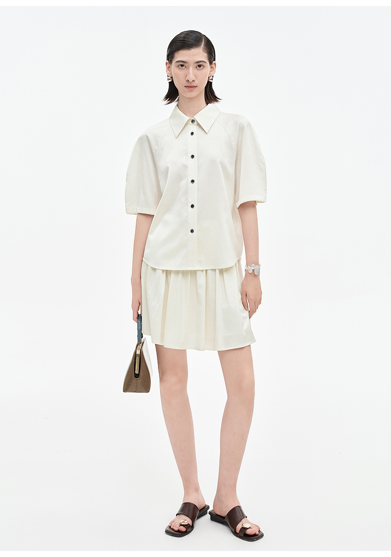 SELFWHO醋酸天丝混纺插肩袖宽松衬衫女2025夏季新款爽滑肌理衬衣