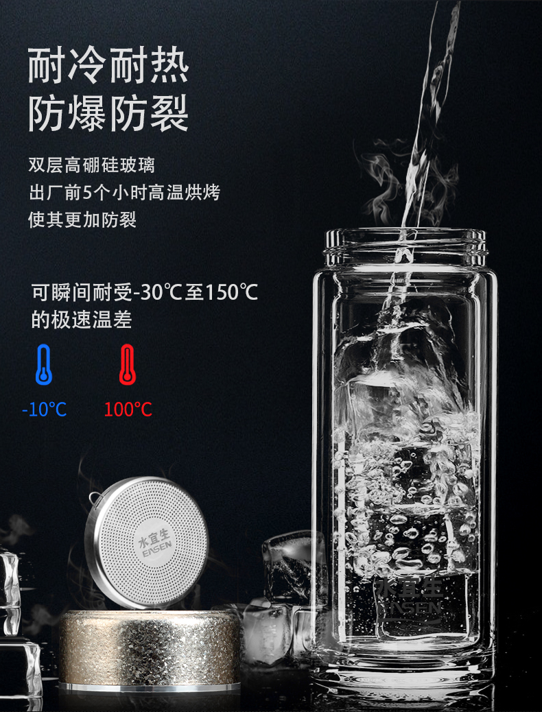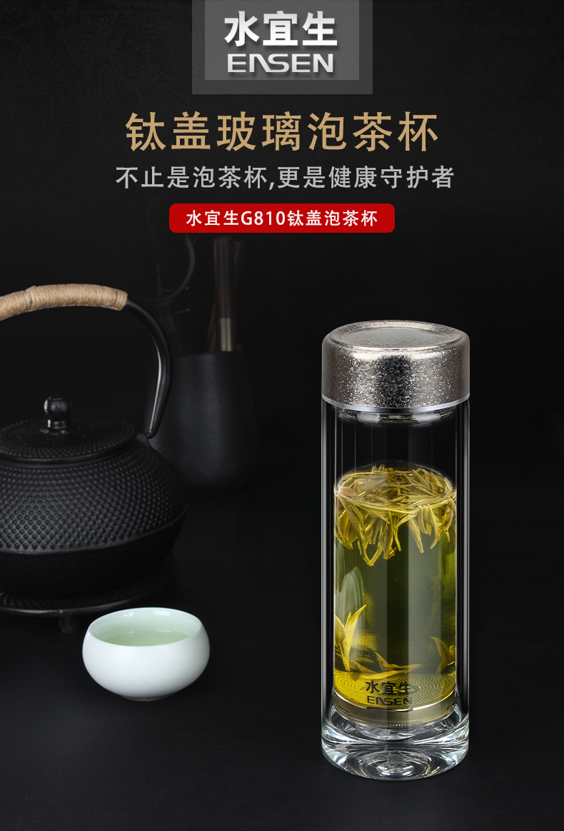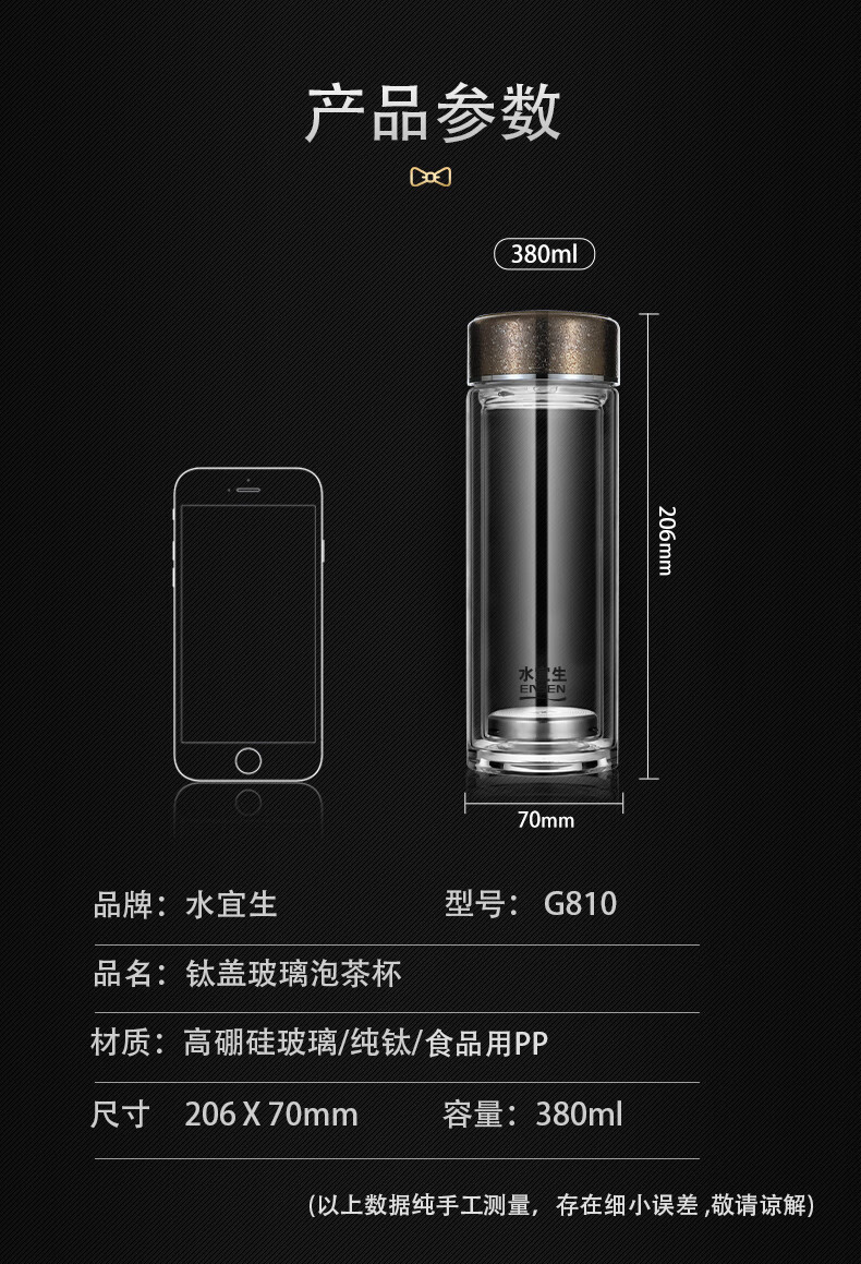 水宜生 钛盖玻璃泡茶杯G810 380ML