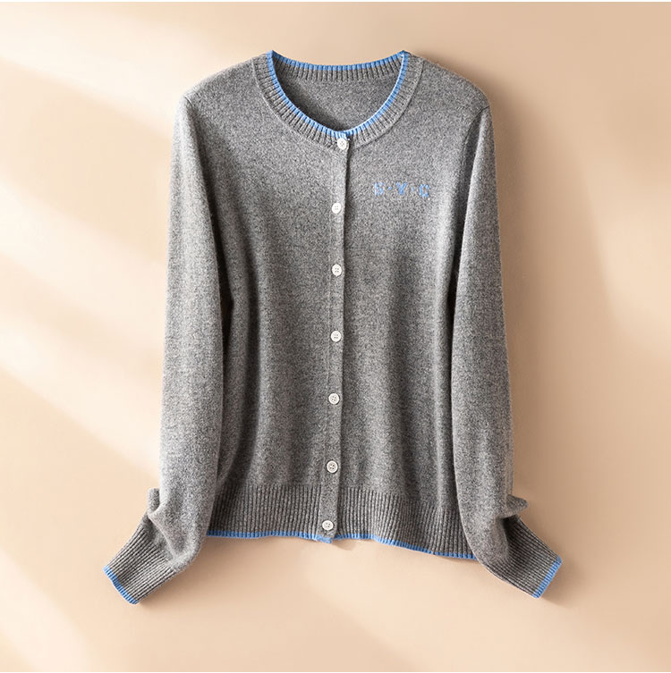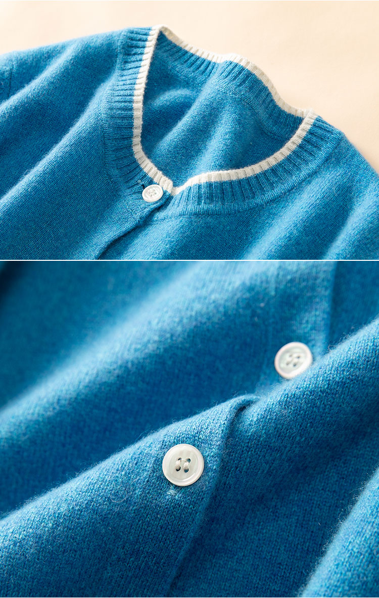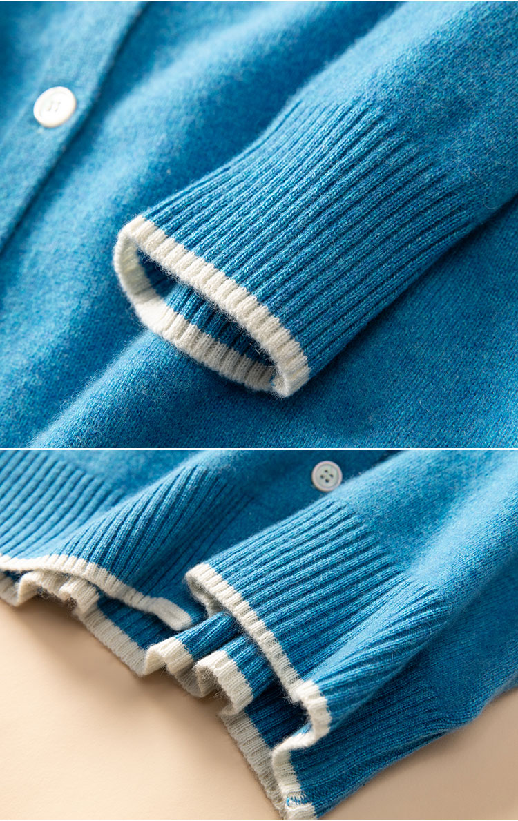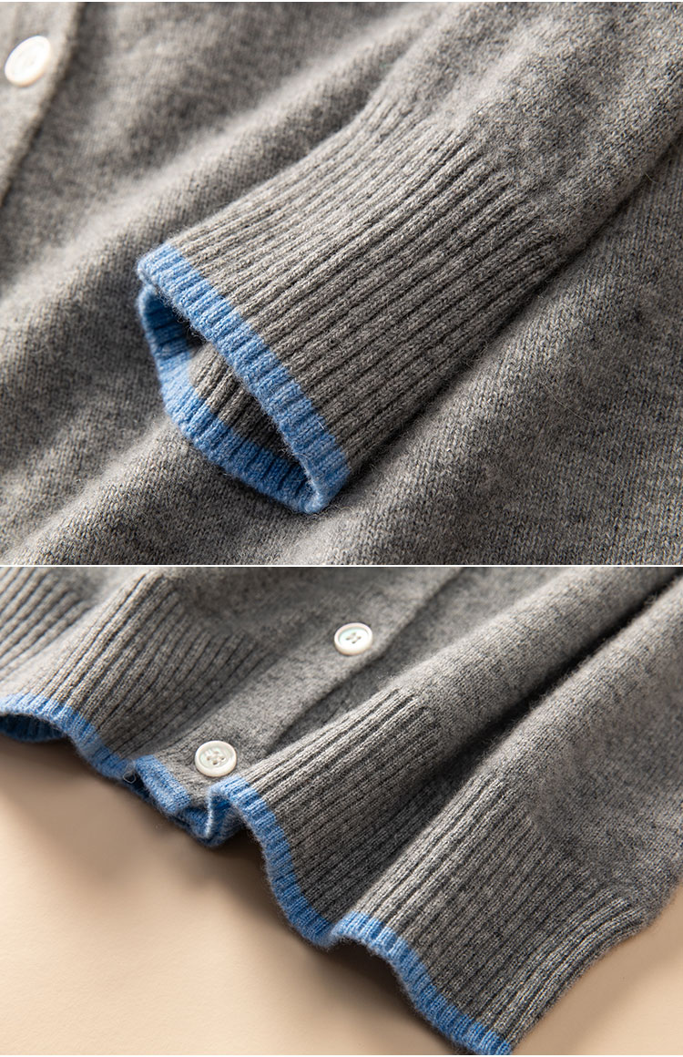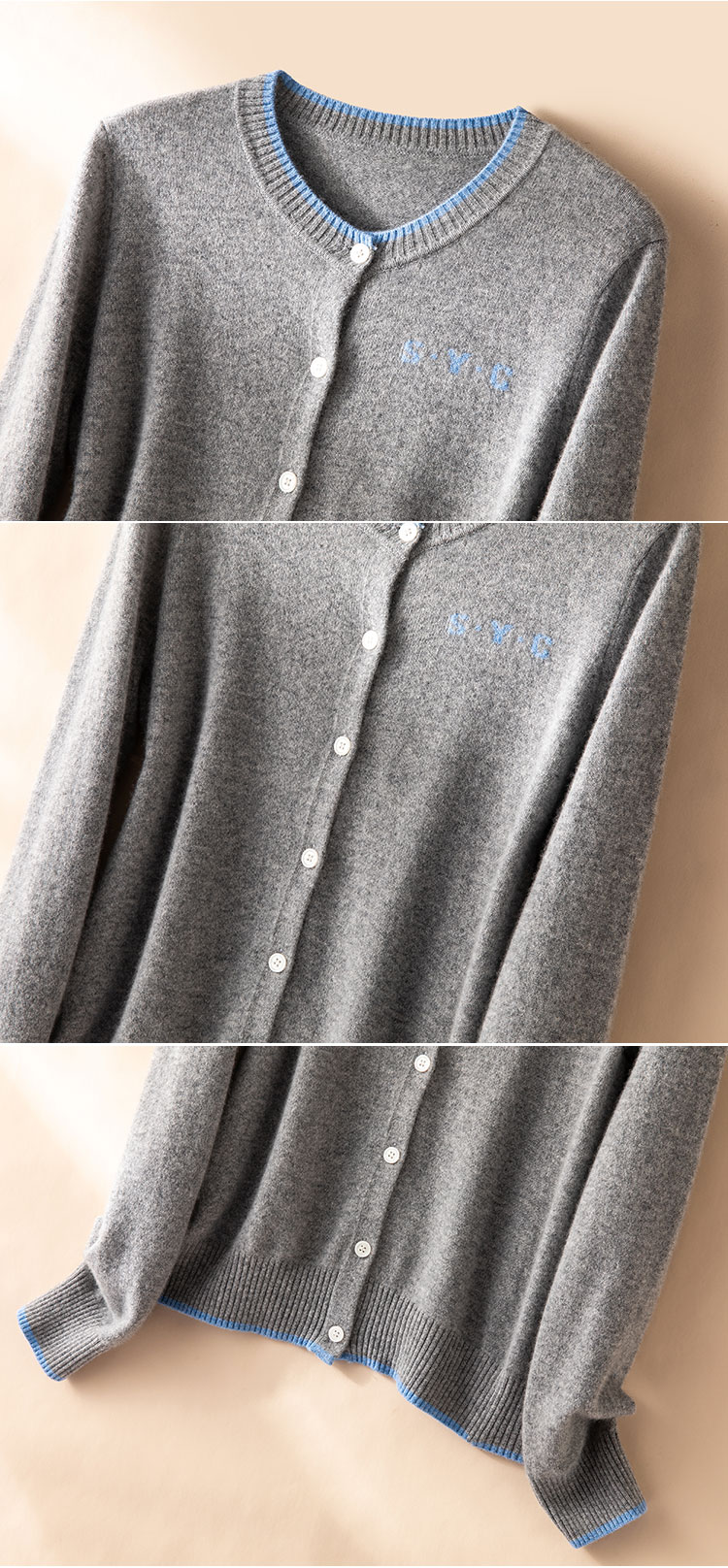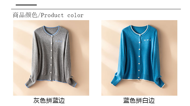 100%Baby小山羊绒~圆领拼色羊绒开衫女小众针织外套BABY25033