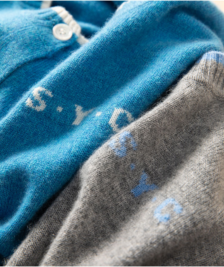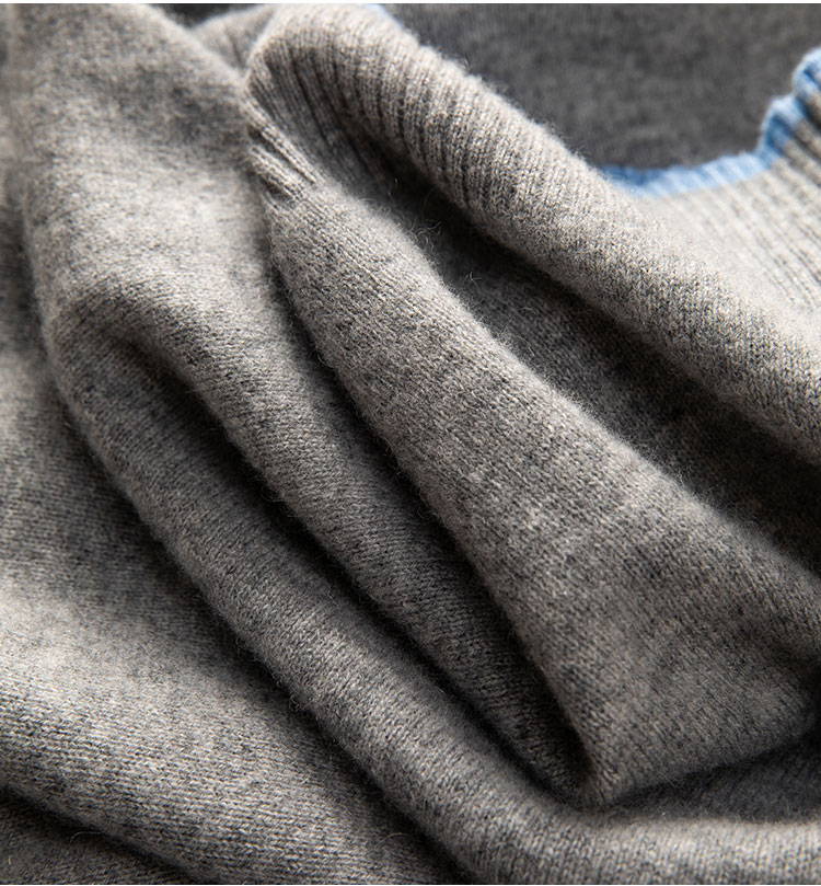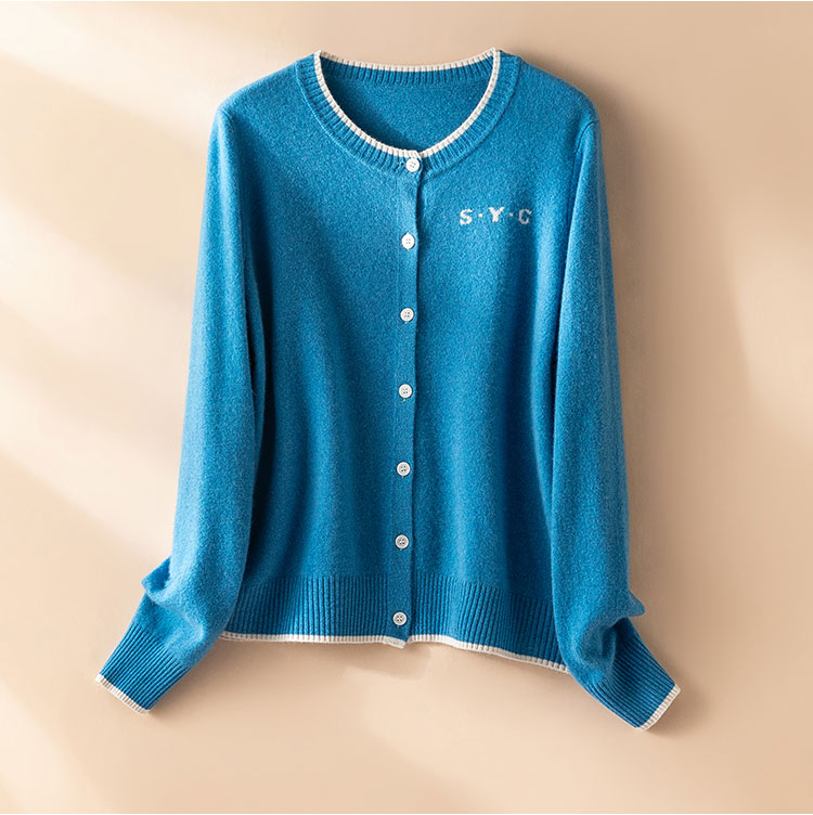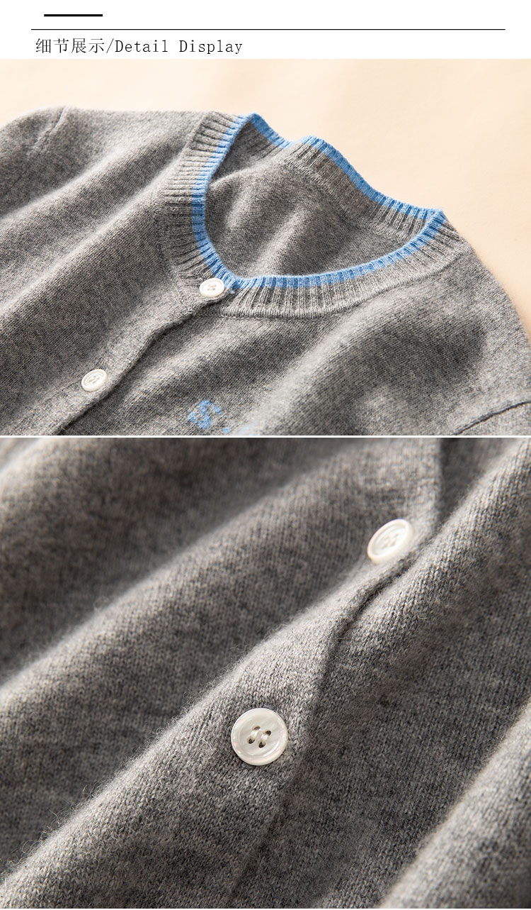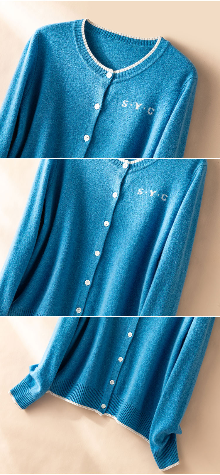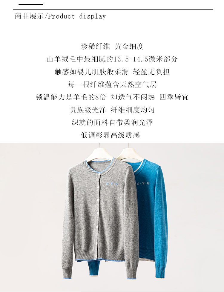 100%Baby小山羊绒~圆领拼色羊绒开衫女小众针织外套BABY25033
