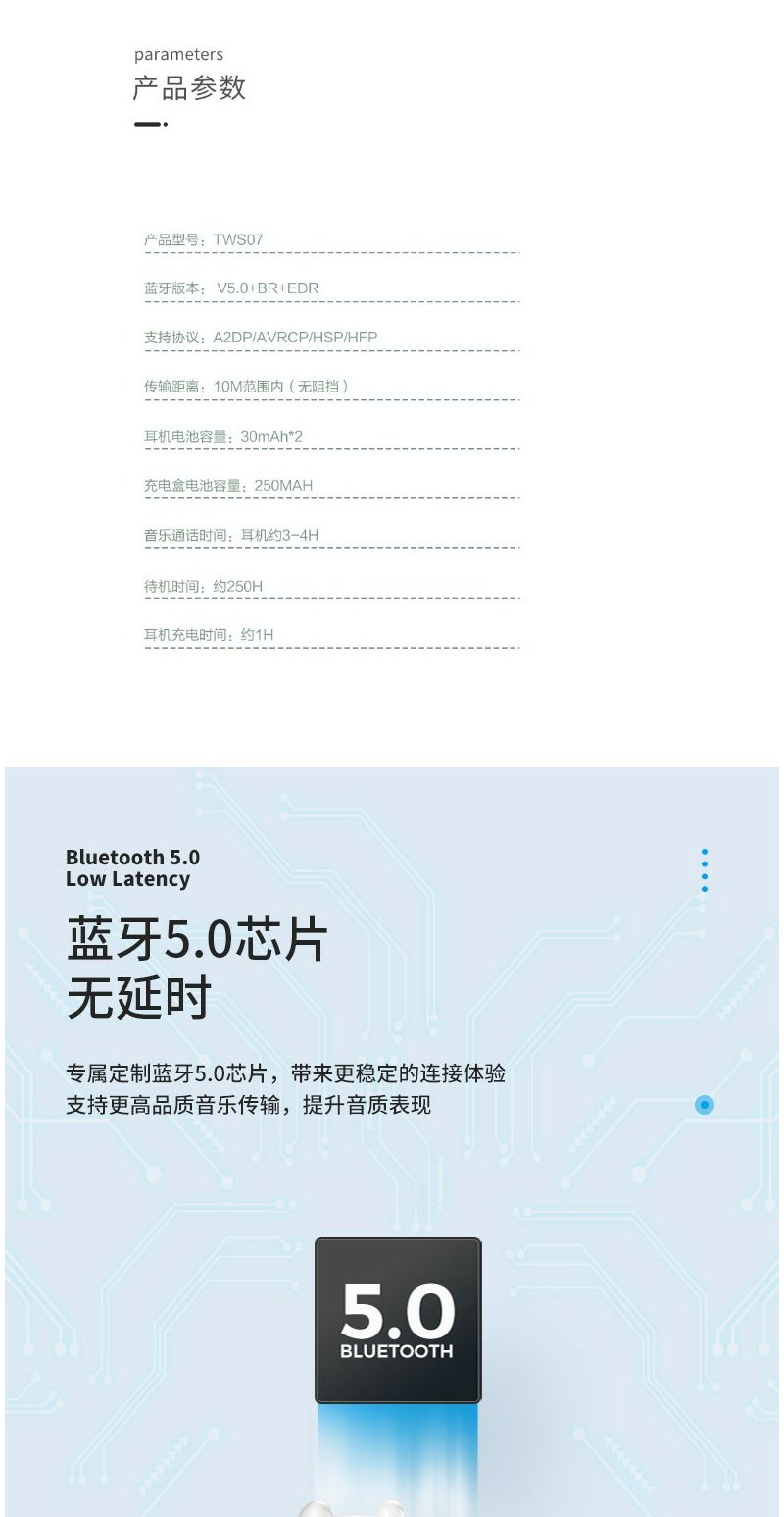 沃品 蓝牙耳机 无线蓝牙耳机半入耳式 TWS07