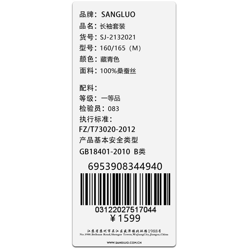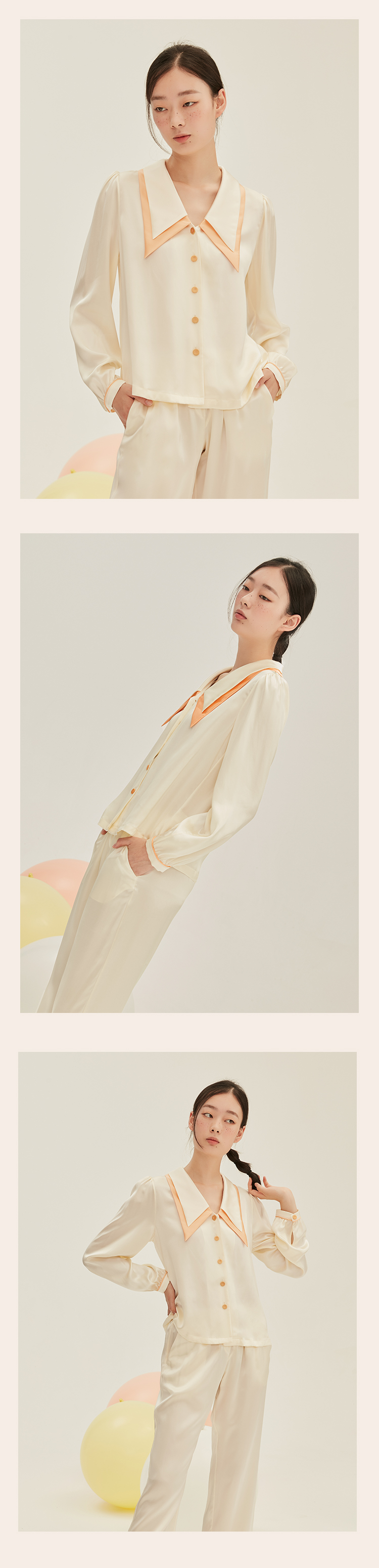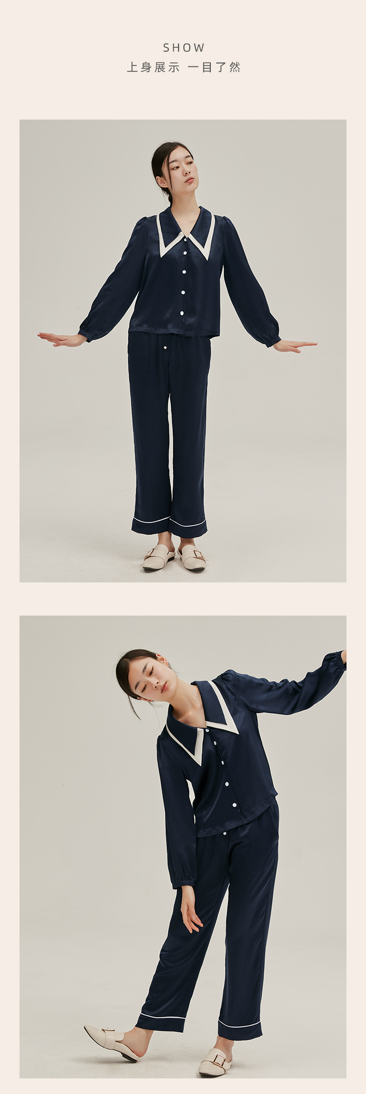 SANGLUO法式尖领泡泡袖19姆米真丝睡衣睡裤套装女桑蚕丝家居服可外穿