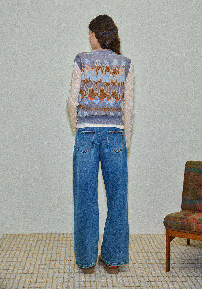 谜底牛仔裤长裤2025冬季新品弧线剪裁复古活力直筒裤女254MJ1659