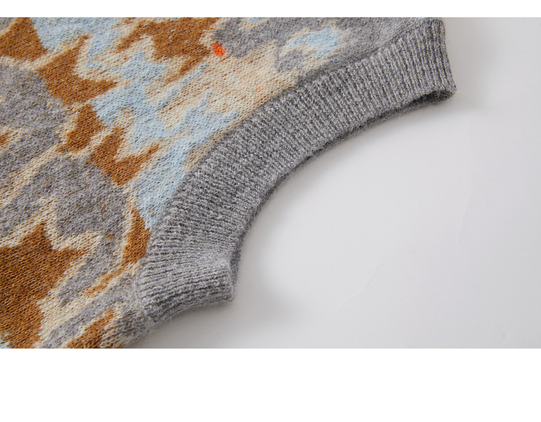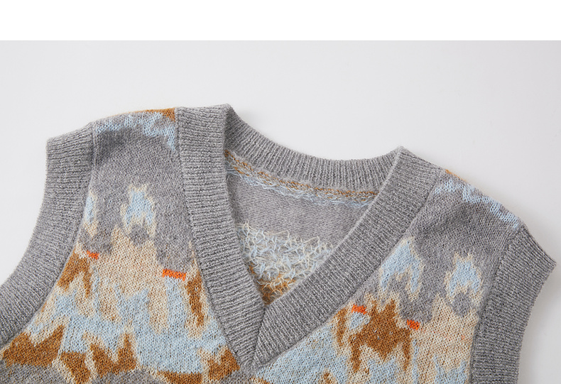 谜底V领针织马甲2025年冬季新品舒适保暖提花叠穿马夹女254MZ1903