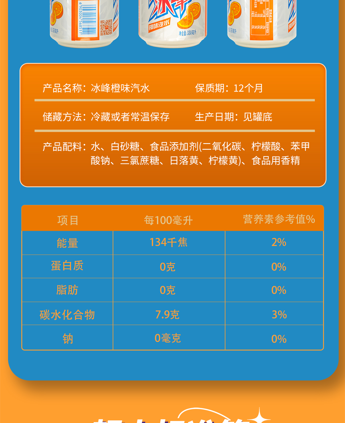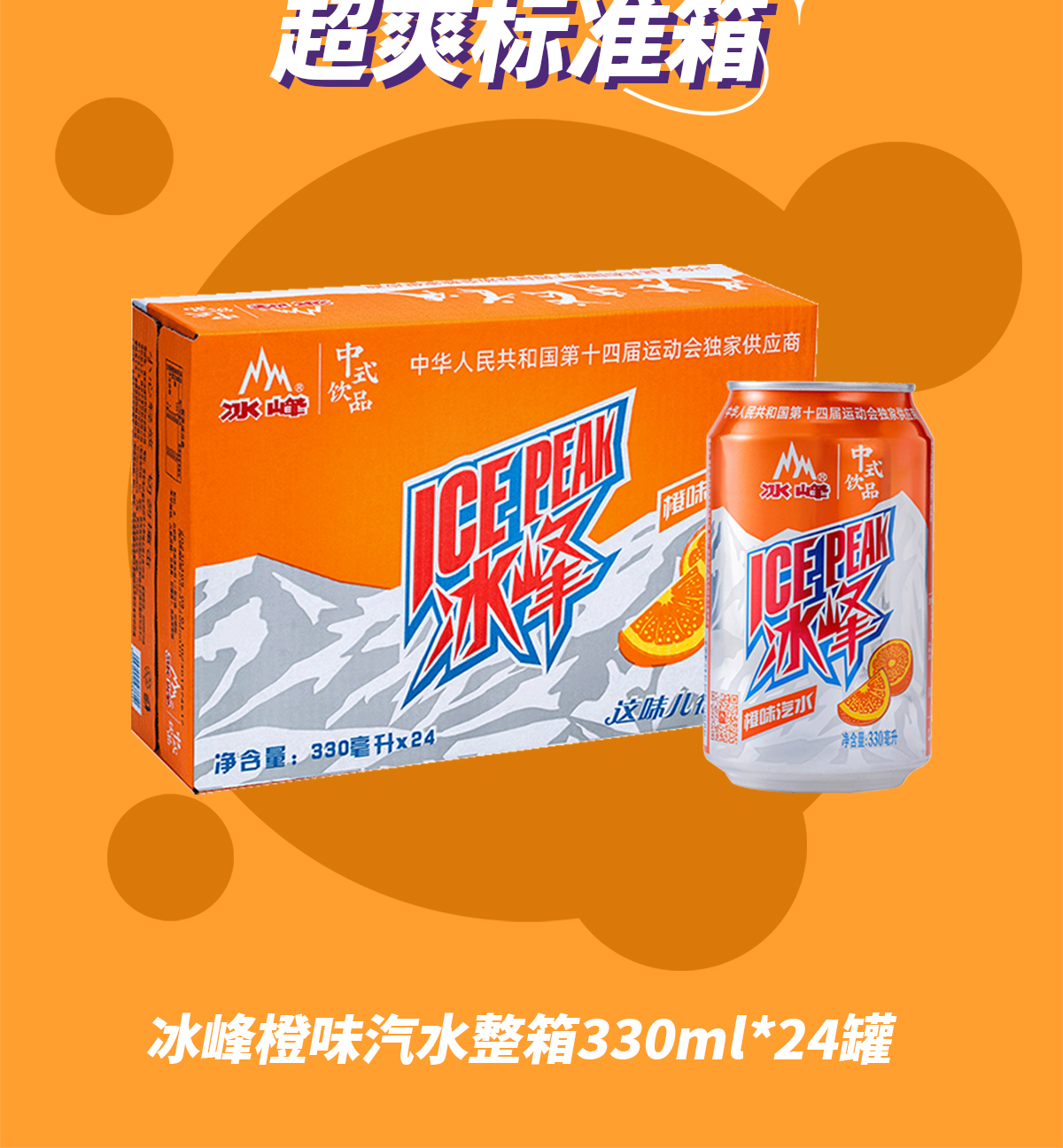 冰峰橙味汽水整箱碳酸饮料 330ml*24罐装(新老包装随机发货)