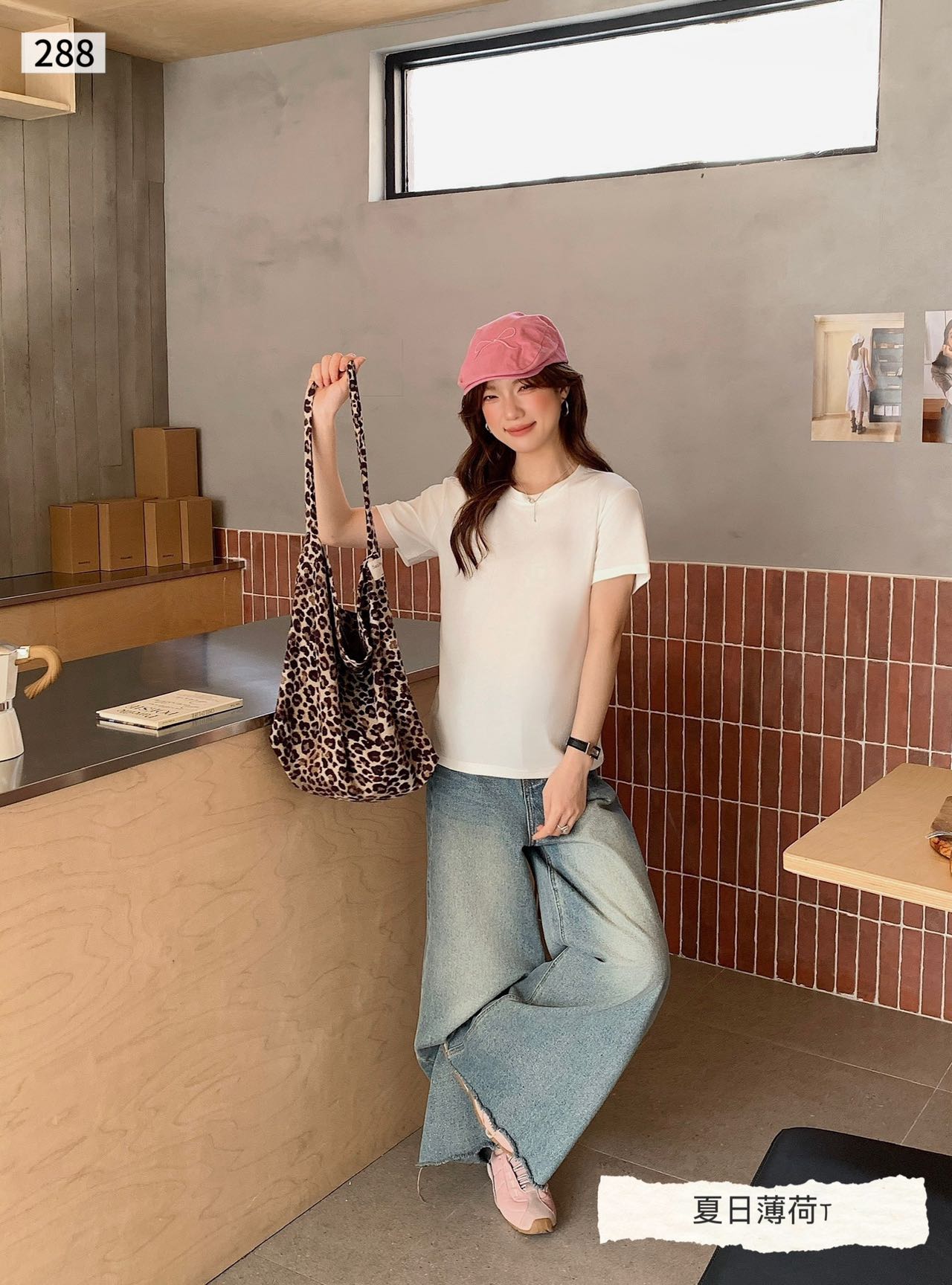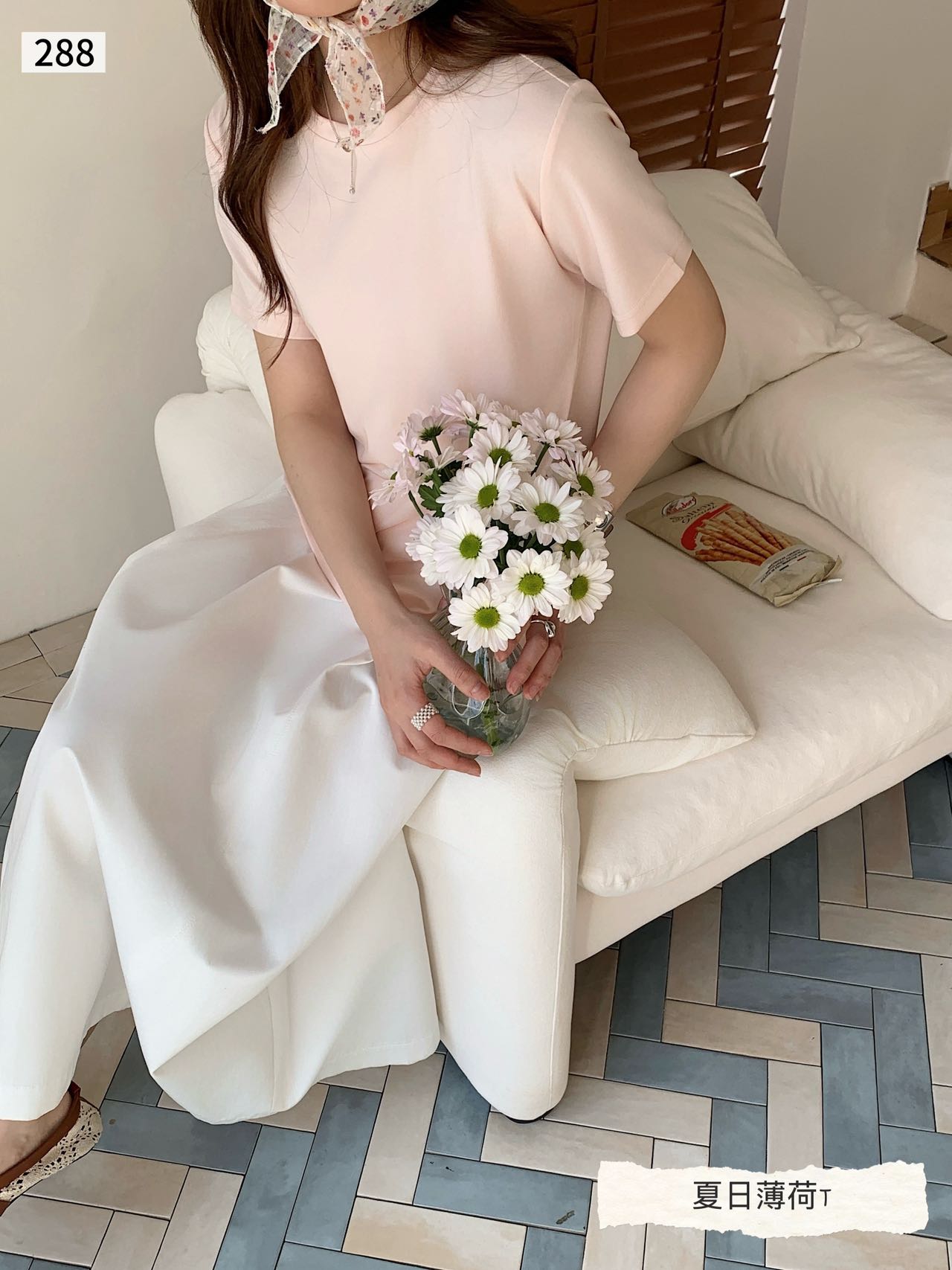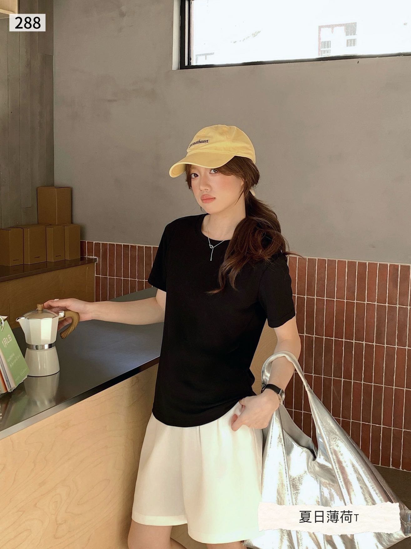 骆柒柒〈夏日薄荷T〉莱赛尔混纺面料丝滑有光泽 柔软亲肤自带凉感 舒适品质百搭时尚并存