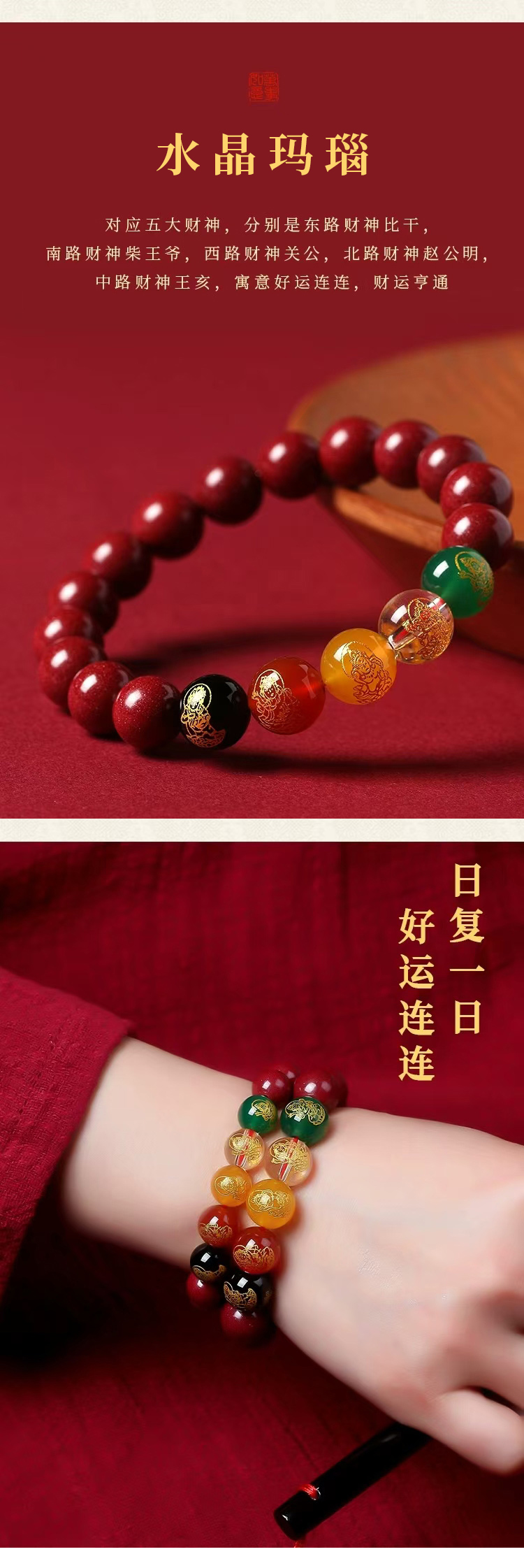ZS00869-五路财神8mm朱砂手串