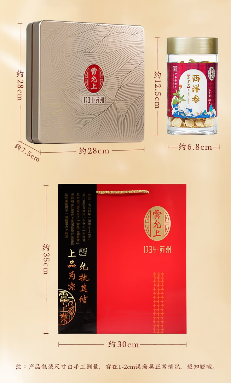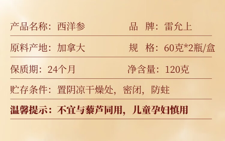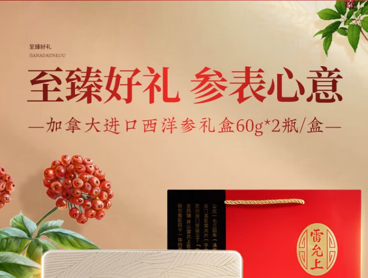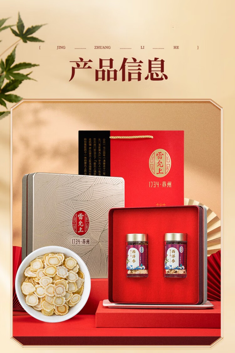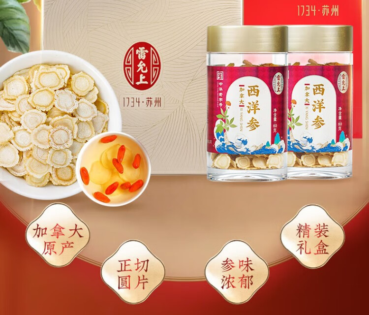雷允上 西洋参切片礼盒(1.2-1.6cm)60g*2瓶装