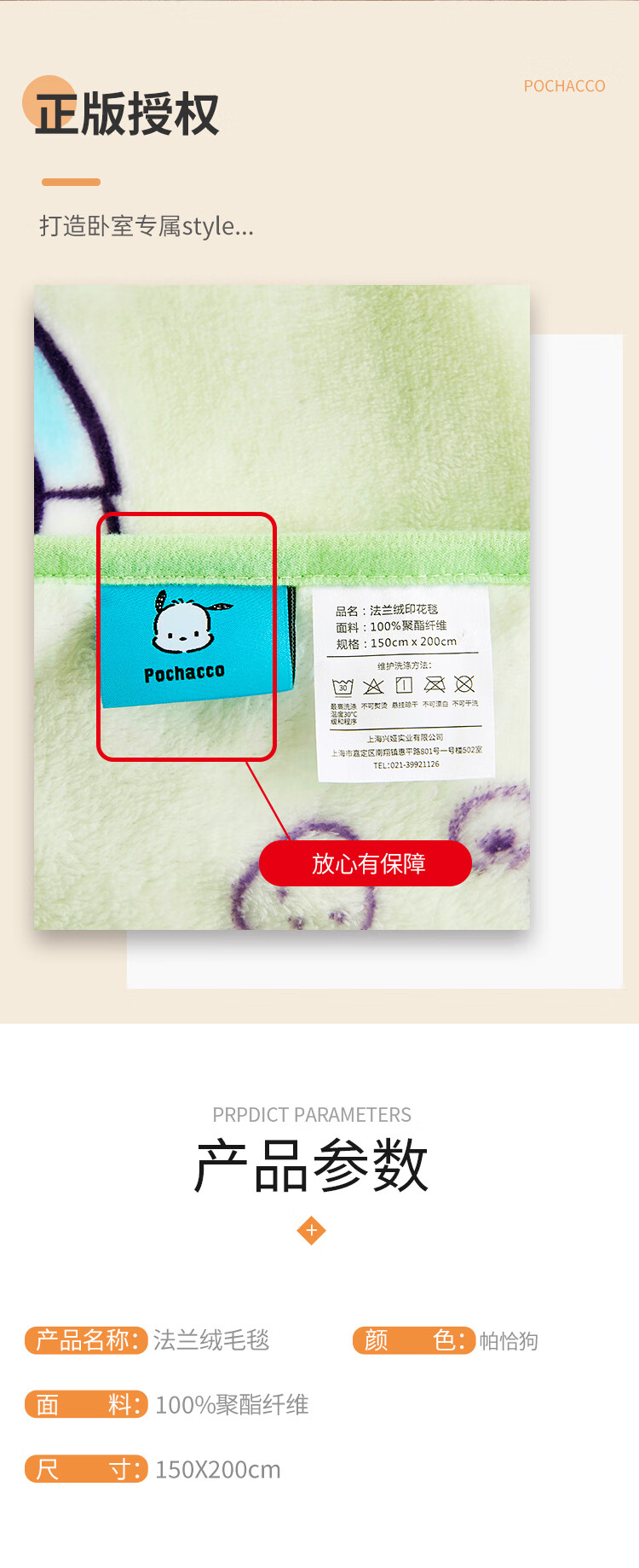 三丽鸥 法兰绒超柔毯-帕恰狗150x200cm SLOTZPQGS