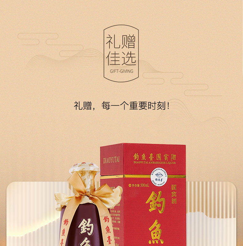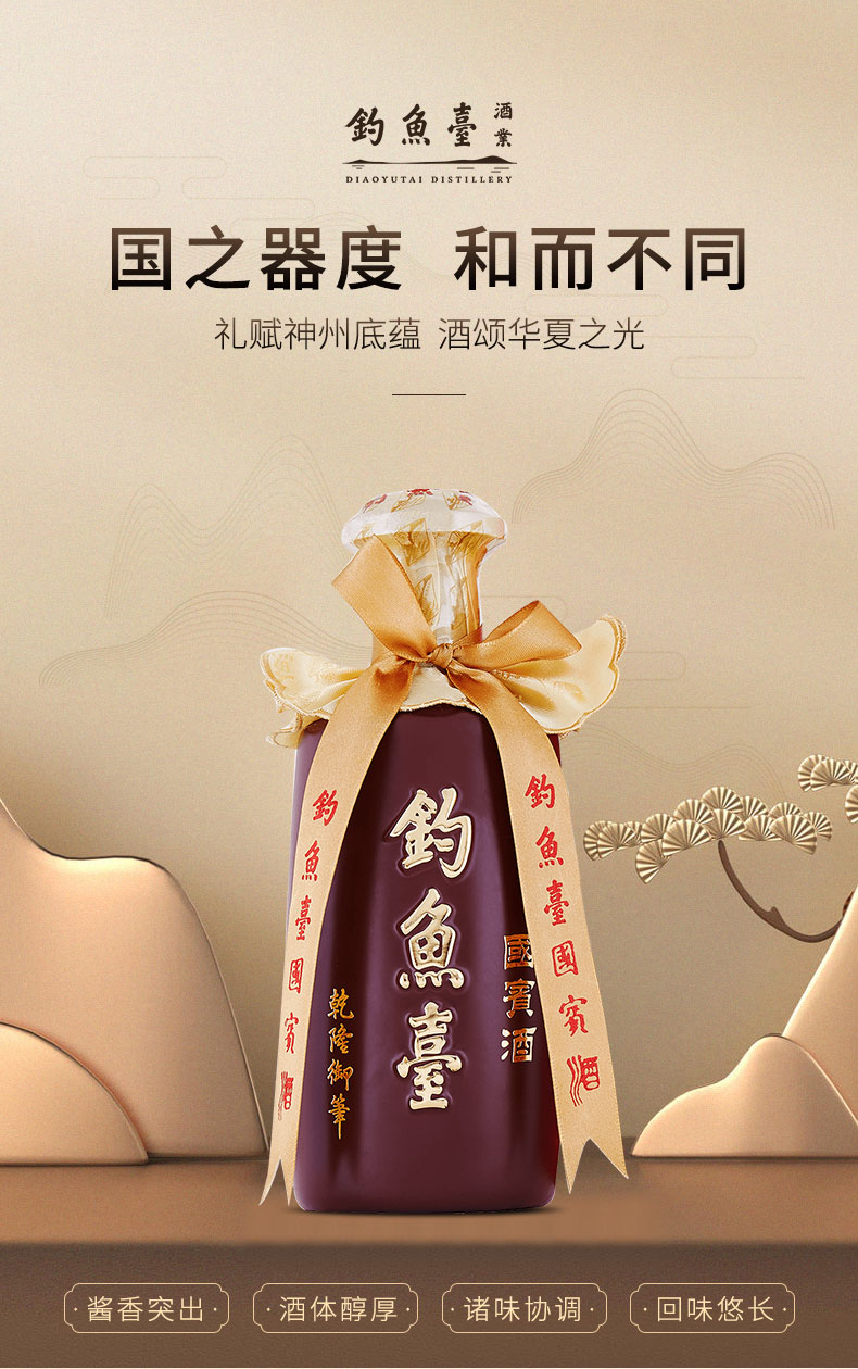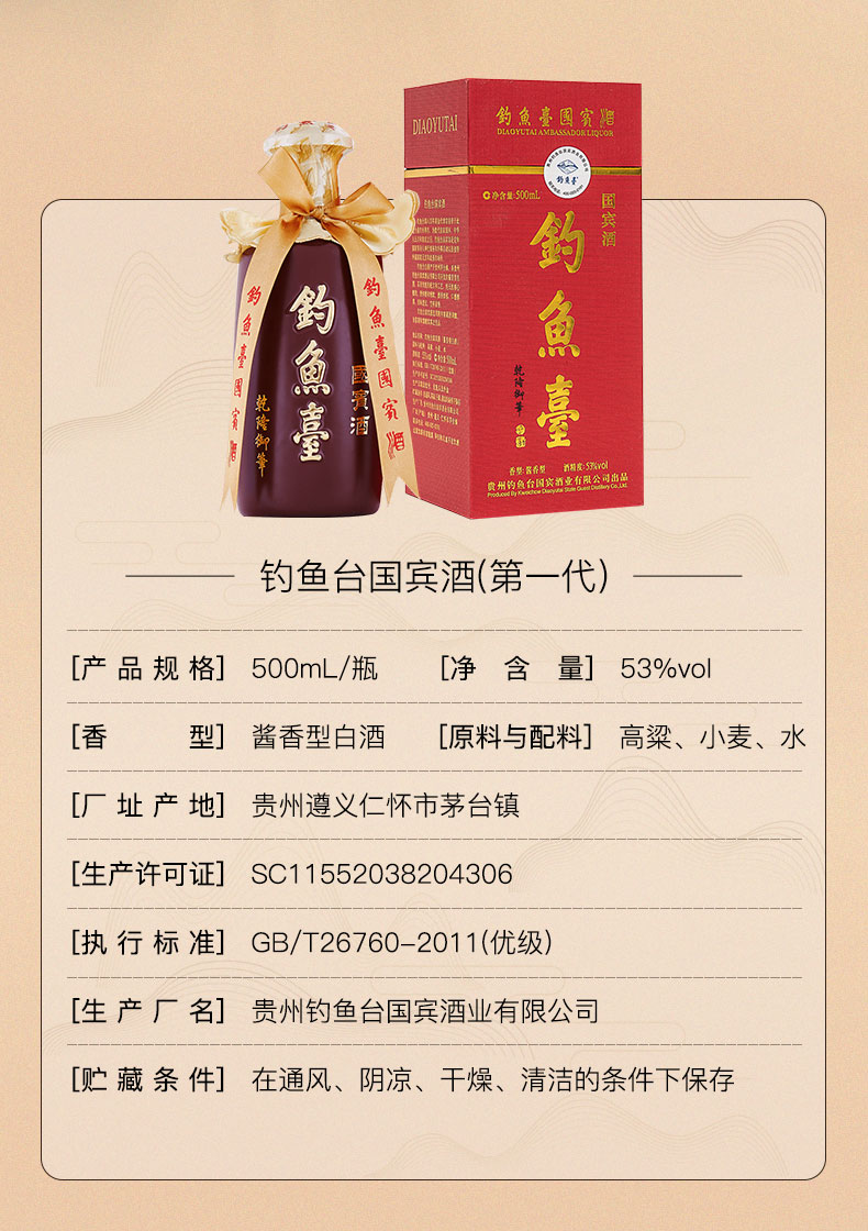 【推荐】钓鱼台 国宾酒 酱香型 53度 500ml 单瓶装