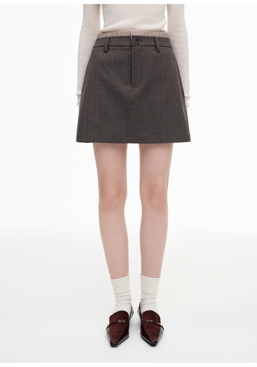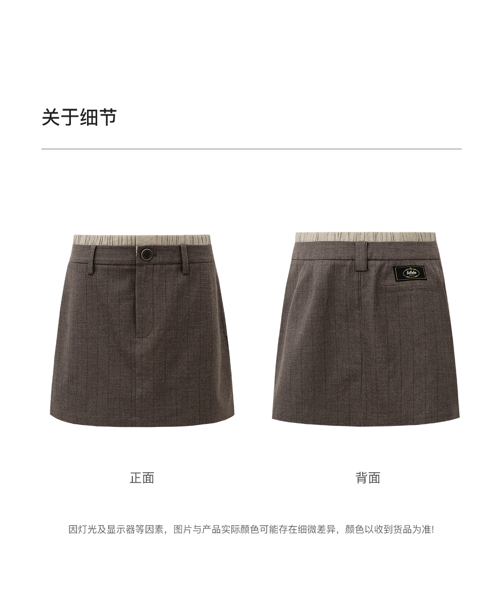 SELFWHO撞色假两件拼接条纹半身裙女2025秋新款高智感百搭A字短裙