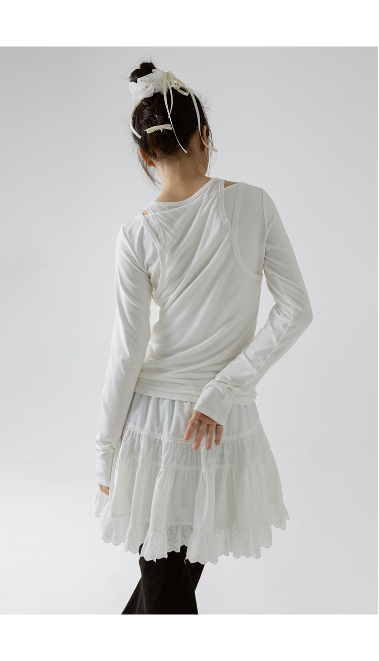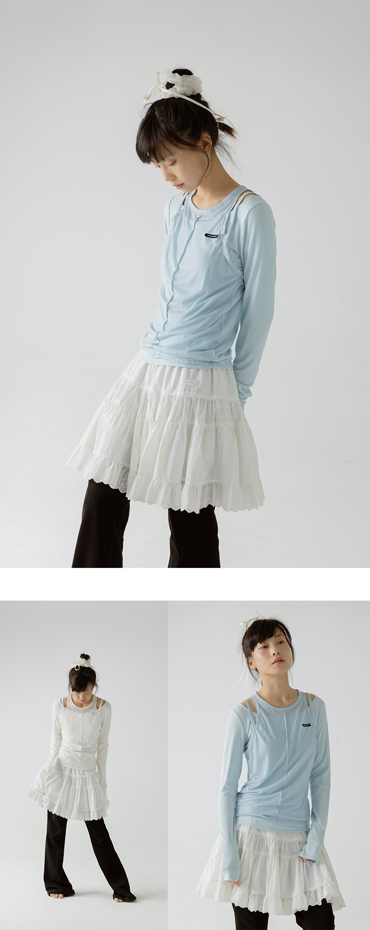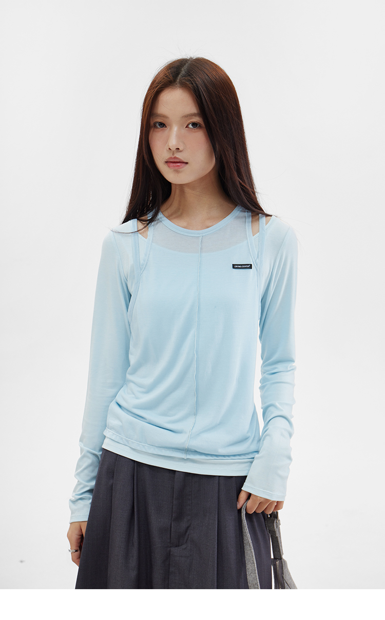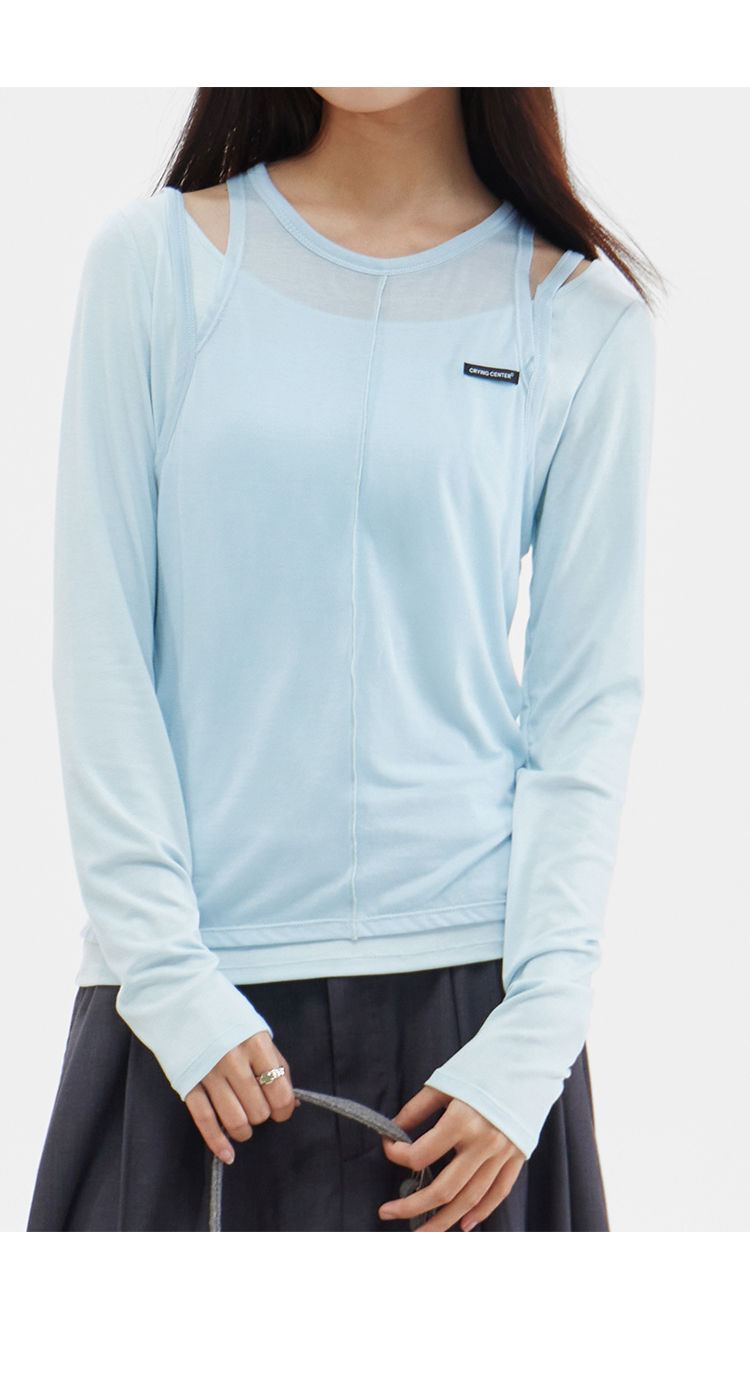 CryingCenter 天蓝纯白背心长袖假两件叠穿上衣长袖tee 哭喊中心
