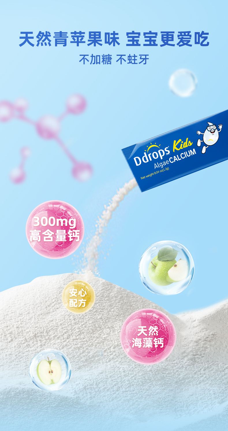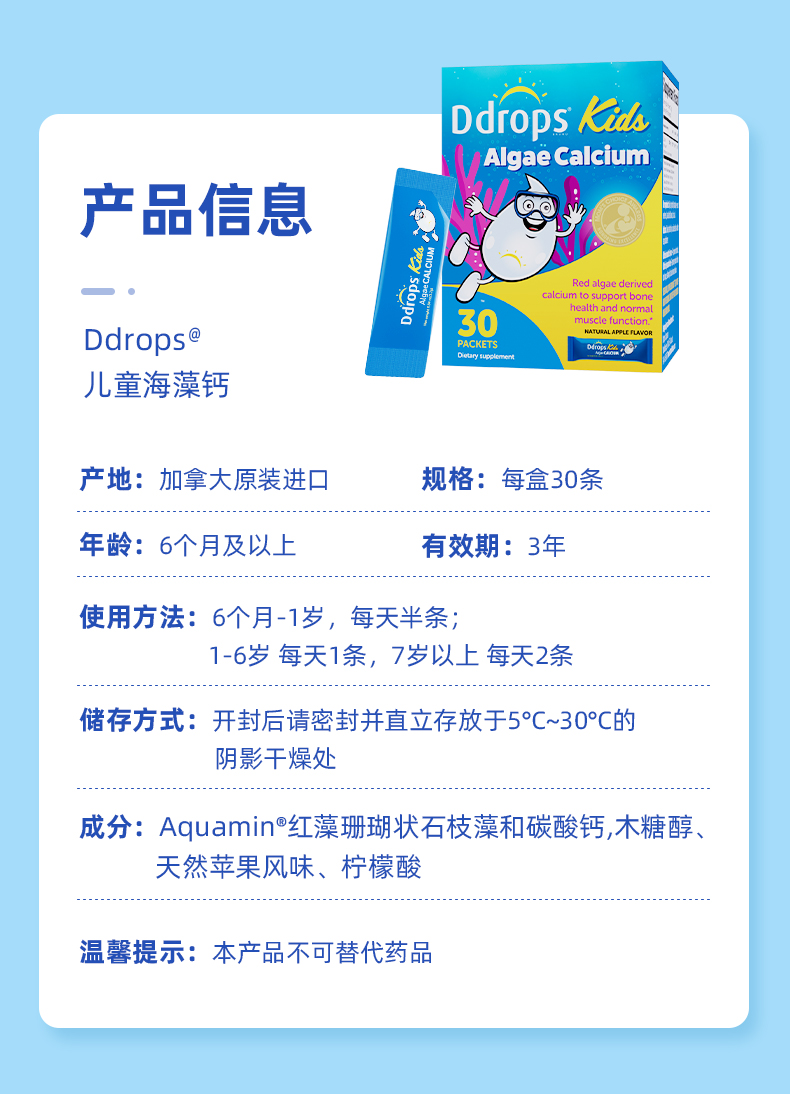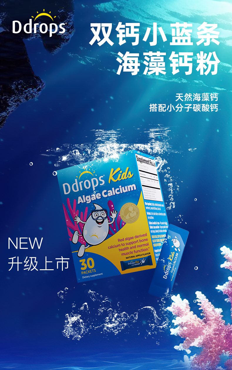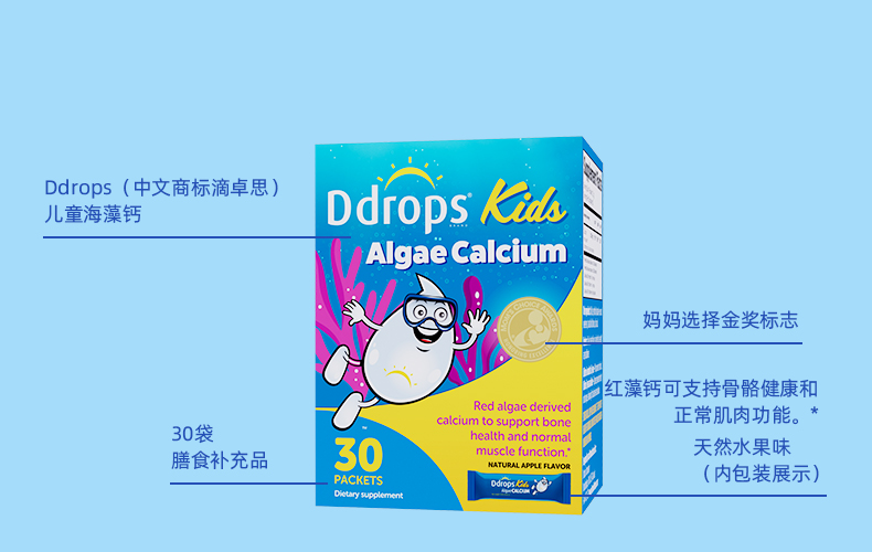 【保税仓】Ddrops 滴卓思儿童海藻钙粉剂 30袋/盒