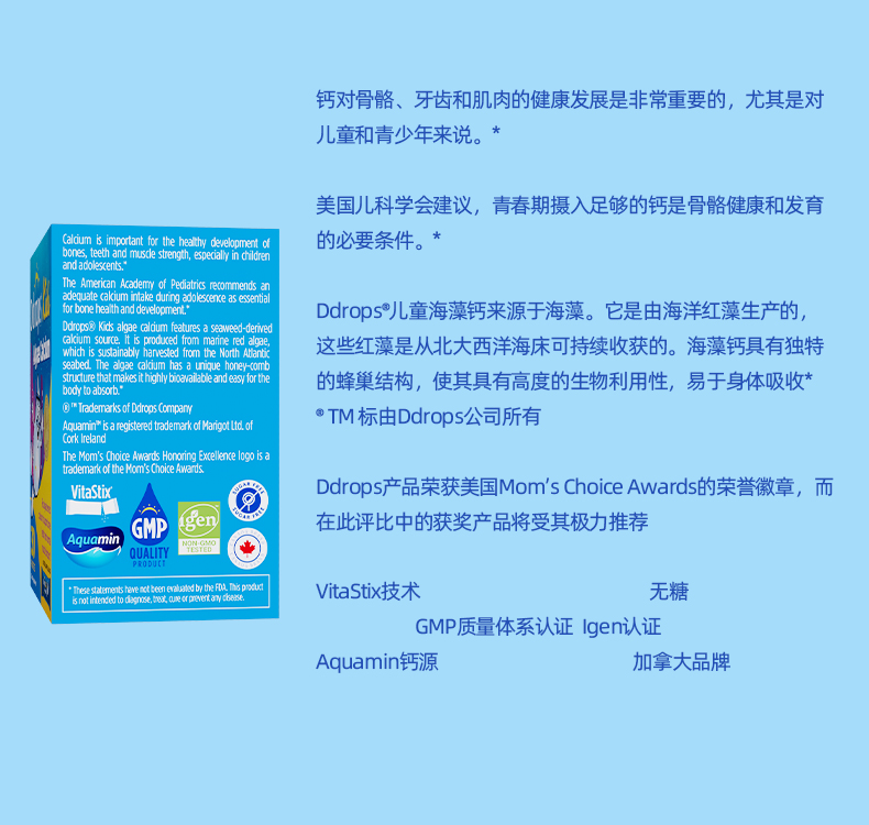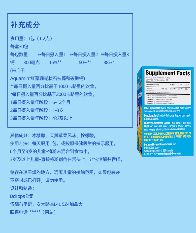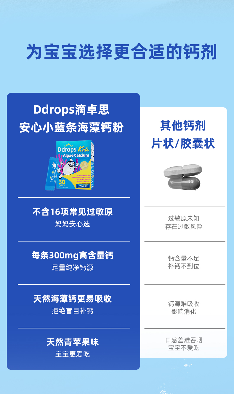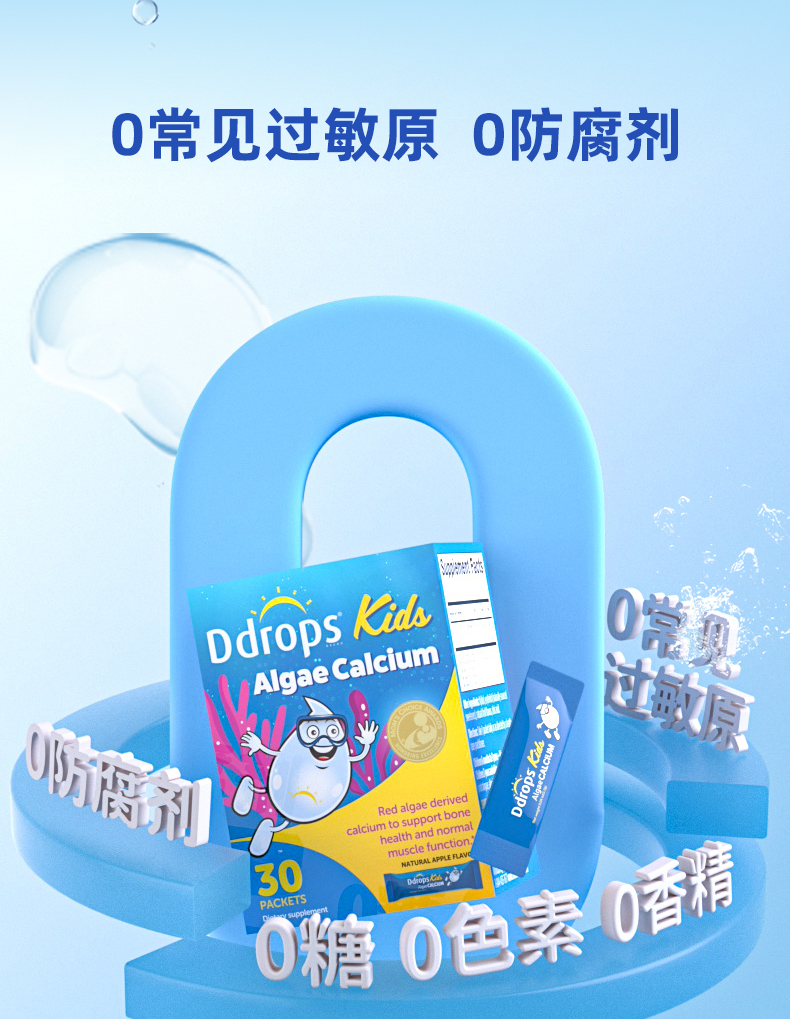 【保税仓】Ddrops 滴卓思儿童海藻钙粉剂 30袋/盒